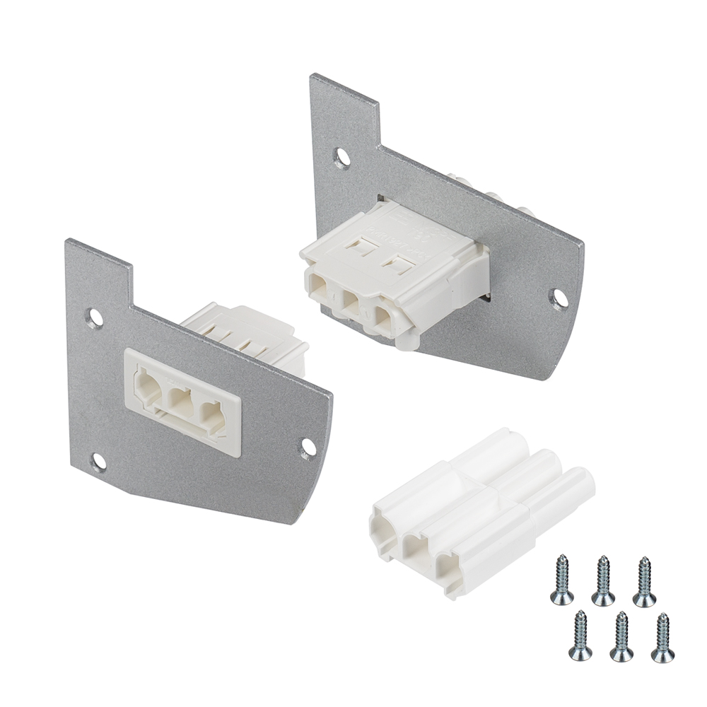 Пара заглушек с разъемом питания (папа-мама) для профиля SHELF-MULTI, в составе с полкодержателем SHELF-MULTI-G. Материал - окрашенный металл.