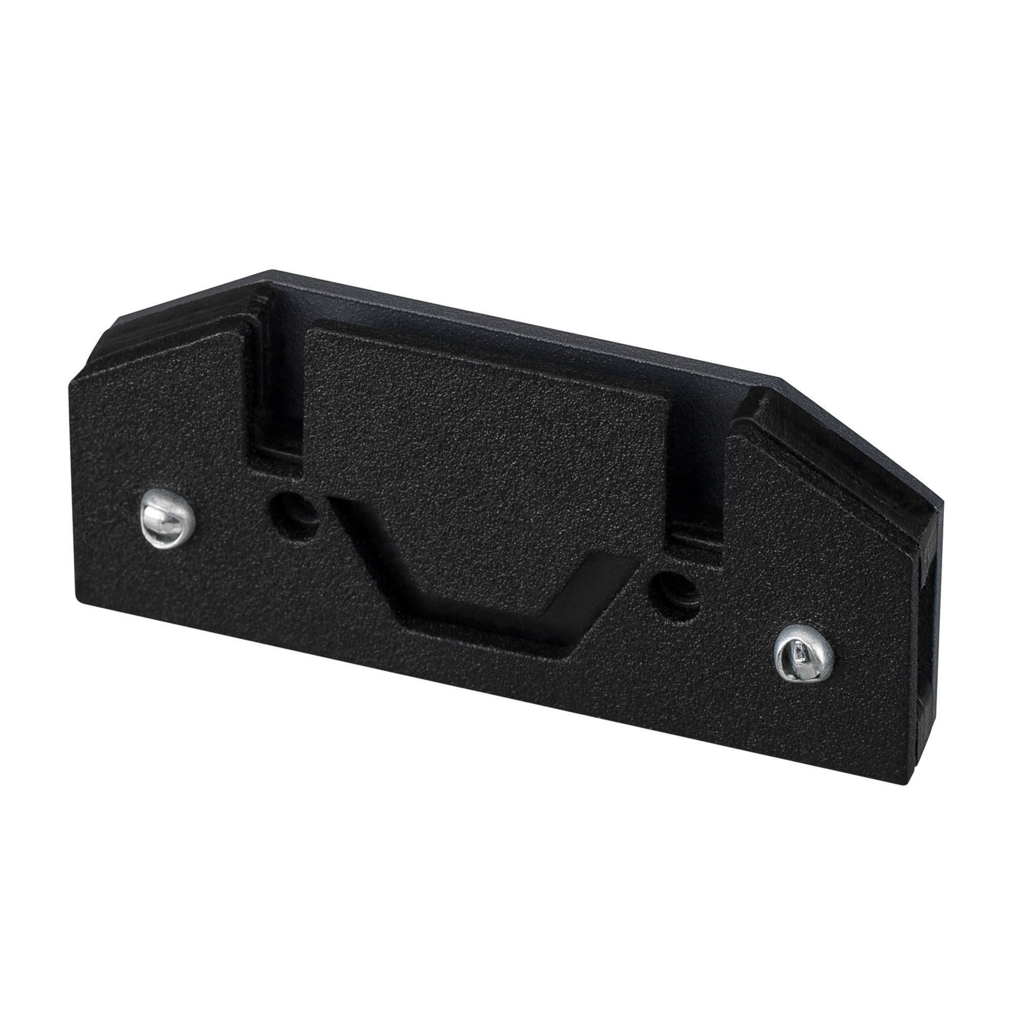 Глухие торцевые заглушки для профиля STRETCH-20-CEIL-D-CENTER. Материал композитный: сталь и ПНД, цвет черный. Размеры 58x7,5x23 мм. Цена за 1 шт.