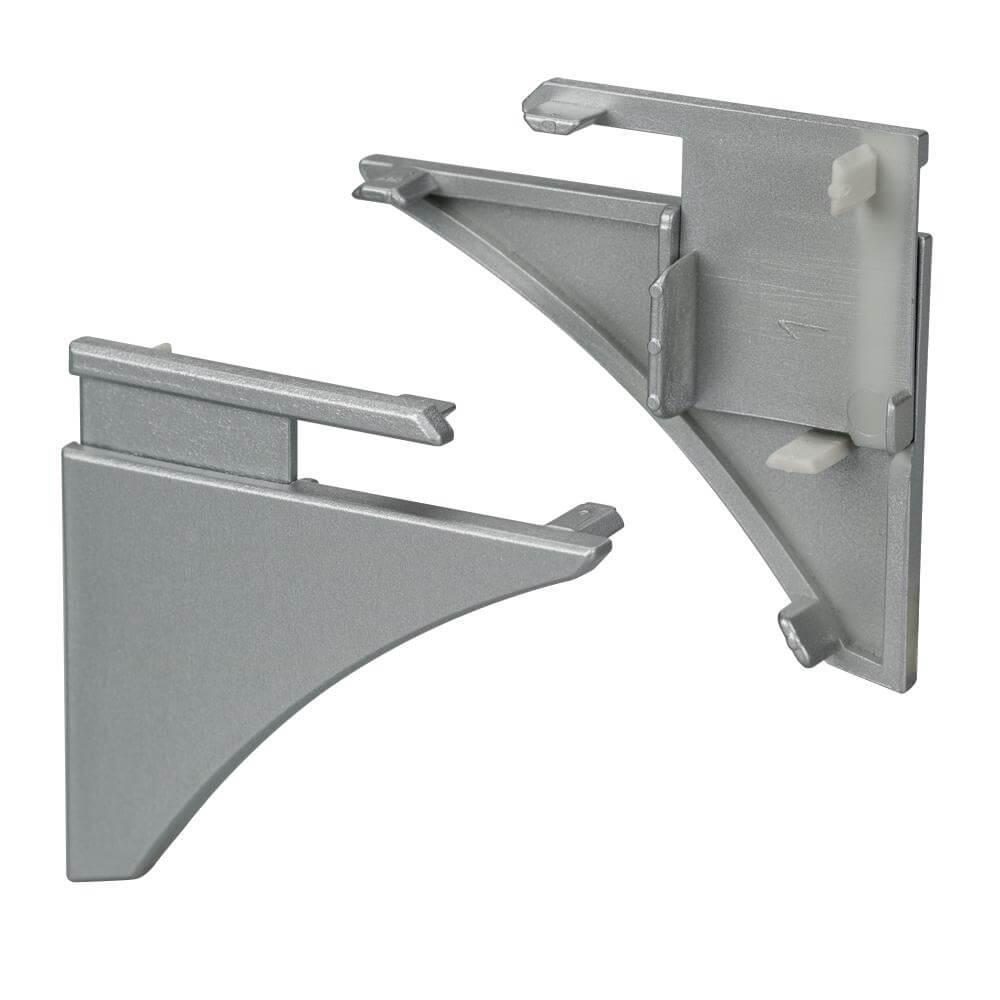 Серебристая левая заглушка для профиля SHELF-620. Придает законченный вид светильнику, а также защищает светодиодную ленту от внешних факторов (грязи, пыли и прочего). Верхняя часть подвижная, позволяет отрегулировать высоту заглушки под высоту полки в пределах 6-20мм.