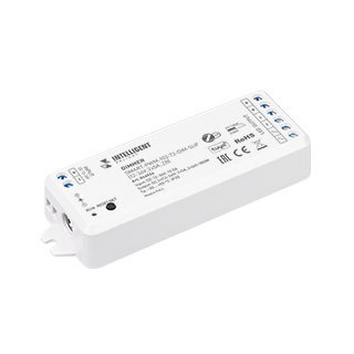 Диммер для управления одноцветной (DIM) светодиодной лентой с напряжением питания 12-36В. Выполняет основные фукнции: включение/выключение, регулировка яркости. Управляется по ZigBee и совместим беспроводной облачной платформой TUYA и АЛИСА от ЯНДЕКС при использовании конвертера ZigBee-WiFi. Управление со смартфона через приложения INTELLIGENT ARLIGHT и Smart Life. Питание от 12-36В, 2 канала управления, максимальная нагрузка 5A на канал, выходная мощность 120-360 Вт (в зависимости от напряжения питания). Габариты устройства 114x38x20 мм.