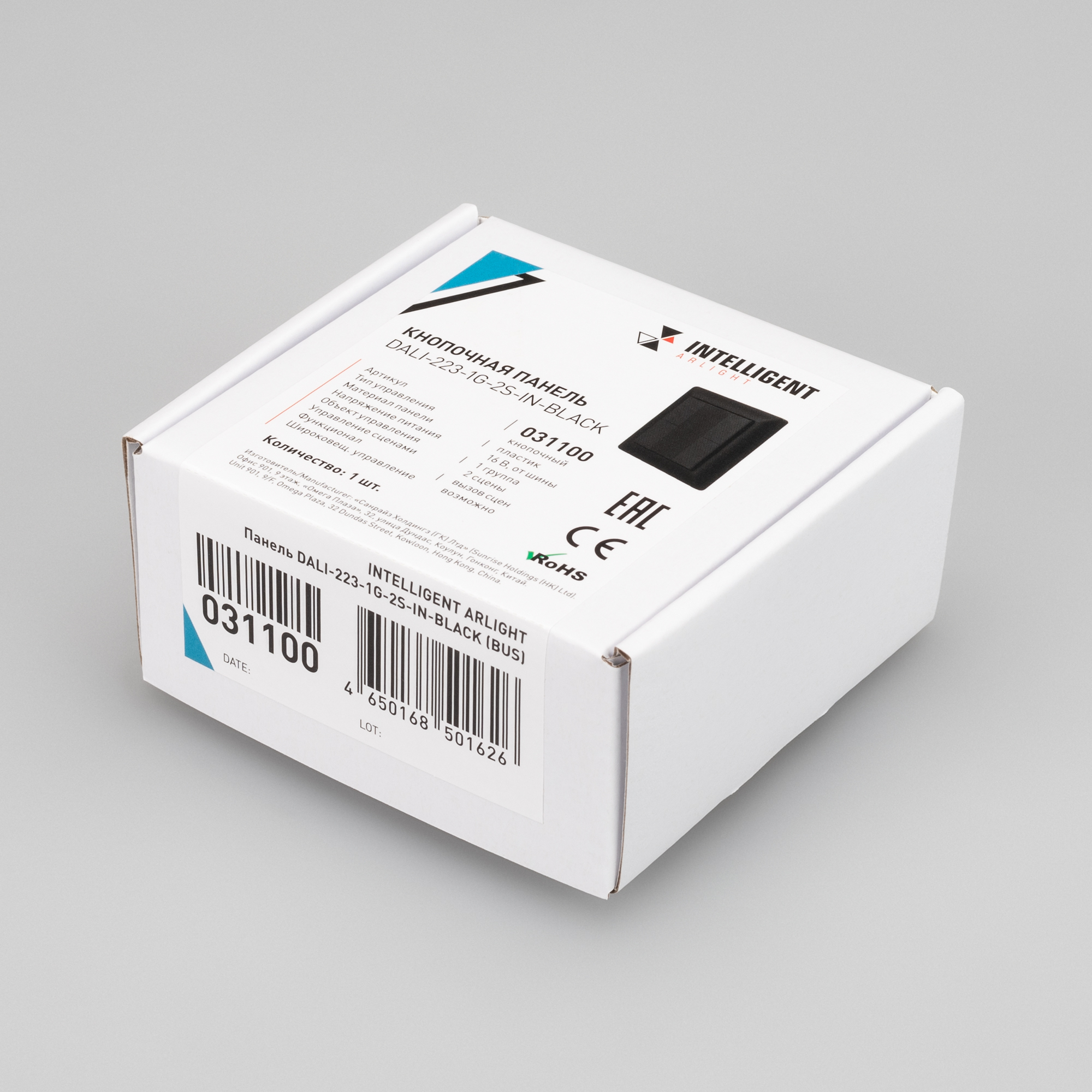 Встраиваемая пластиковая панель чёрного цвета с кнопочным управлением, предназначенная для управления одноцветными светодиодными лентами, светильниками и другими источниками света в системах управления светом DALI. Позволяет включать/выключать свет в одной группе, менять его яркость, сохранять и вызывать до 2 световых сцен. Установка номера группы и сцен выполняется переключателями на задней стороне панели. Устройство совместимо с диммерами стандарта DALI. Передача команд от панели к диммерам выполняется по общей двухпроводной шине DALI. Удобное и точное управление при помощи отдельных механических кнопок для каждой функции. Питание от шины DALI. Габариты устройства составляют 81х81х22.5 мм. Панель совместима с декоративными рамками ведущих мировых производителей (GIRA, JUNG, BERKER, MERTEN). Стандартная рамка входит в комплект поставки.