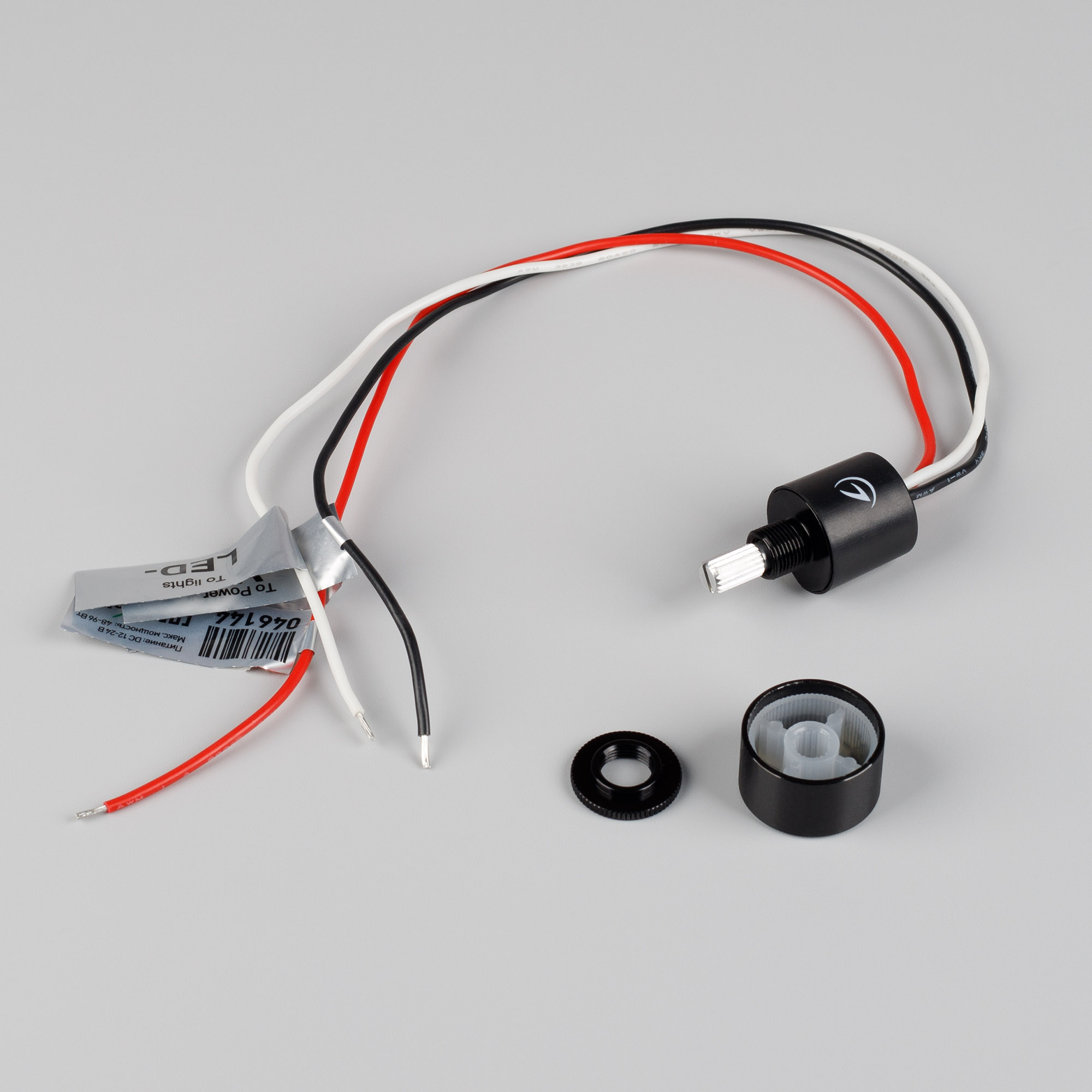 Питание/рабочее напряжение DC 12-24 В, максимальный ток 4 А на канал, 1 канал, максимальная мощность 48-96 Вт. Реагирует на нажатие на кнопку, короткое нажатие - вкл/выкл, вращение кнопки - диммирование. Функция памяти последней настройки. Диаметр врезного отверстия 10 мм, глубина не более 5 мм. Длина кабеля 300 мм, IP65.