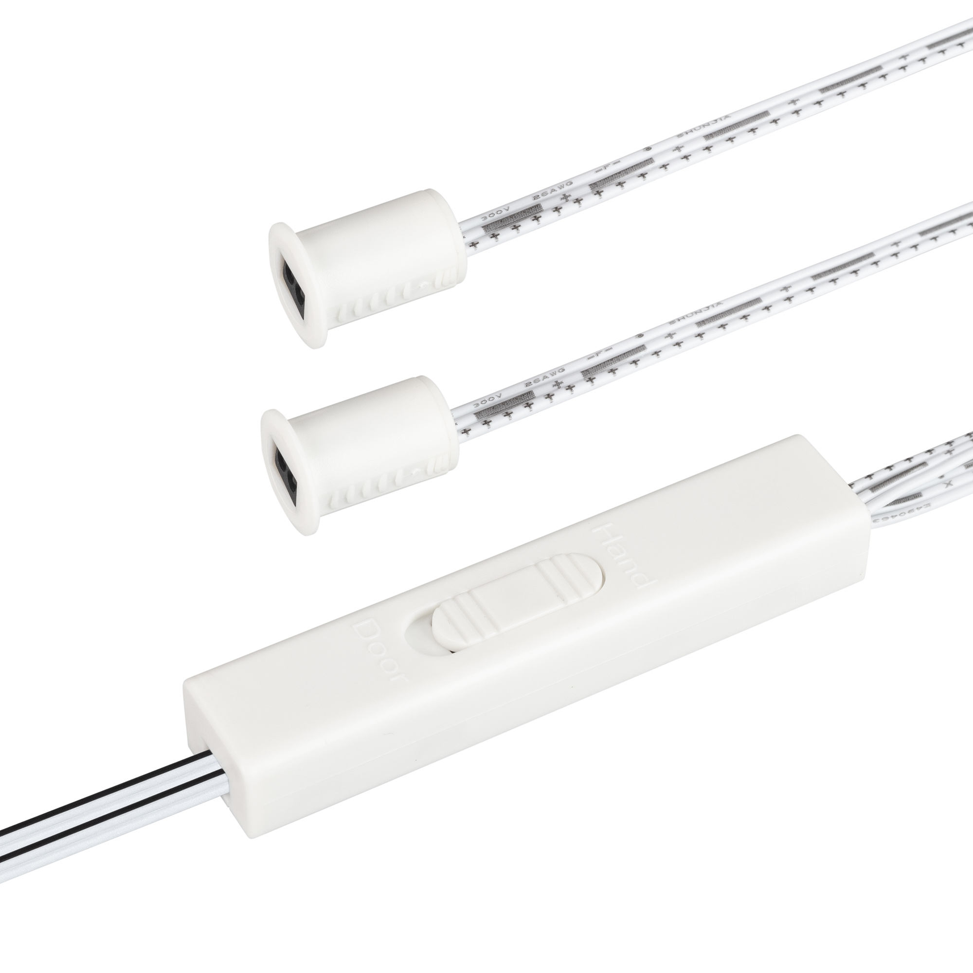 ИК-датчик SR-PRIME-RECESSED-IRD/H-R11-WH (12-24V, 48-96W, DOOR/HAND) предназначен для бесконтактного включения и выключения светодиодной ленты или других источников света с напряжением питания DC12В или DC24В и мощностью до 48/96 Вт. Благодаря микро-размерам двух датчиков круглой формы Ø 13 x 18 мм с проводами длиной 1м, легко устанавливаются в мебель, полки и другие конструкции. Блок управления расположен отдельно. Провод с коннекторами длиной 25 см позволяет быстро и безопасно подвести питание к блоку управления. Включение света происходит при открытии двери или поднесении руки к датчику. Переключатель между режимами расположен на корпусе блока управления. Датчик срабатывает на расстоянии до 10 см. Белый цвет исполнения корпуса позволяет подстроиться под цветовую гамму мебели. Отличное решение при организации подсветки в двустворчатых шкафах или шкафах-купе, и др. мебели.