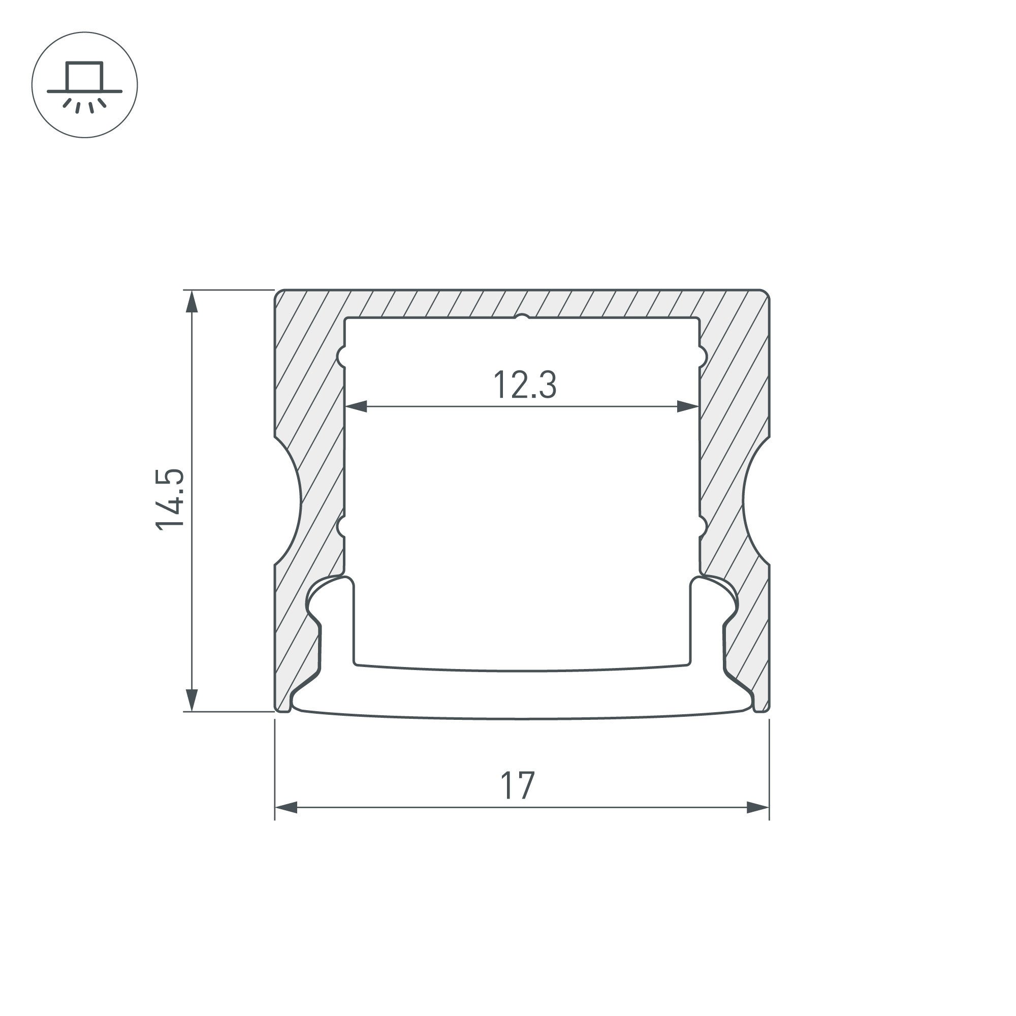 Накладной профиль из анодированного алюминия для контурной подсветки элементов интерьера. Габаритные размеры профиля составляют 2000 мм в длину, 17 мм в ширину и 14,5 мм в высоту. Площадка для установки светодиодных лент позволяет использовать ленту шириной до 12 мм и мощностью до 17 Вт/м. Это обеспечивает гибкость в выборе светодиодных лент и создает потрясающие световые решения.