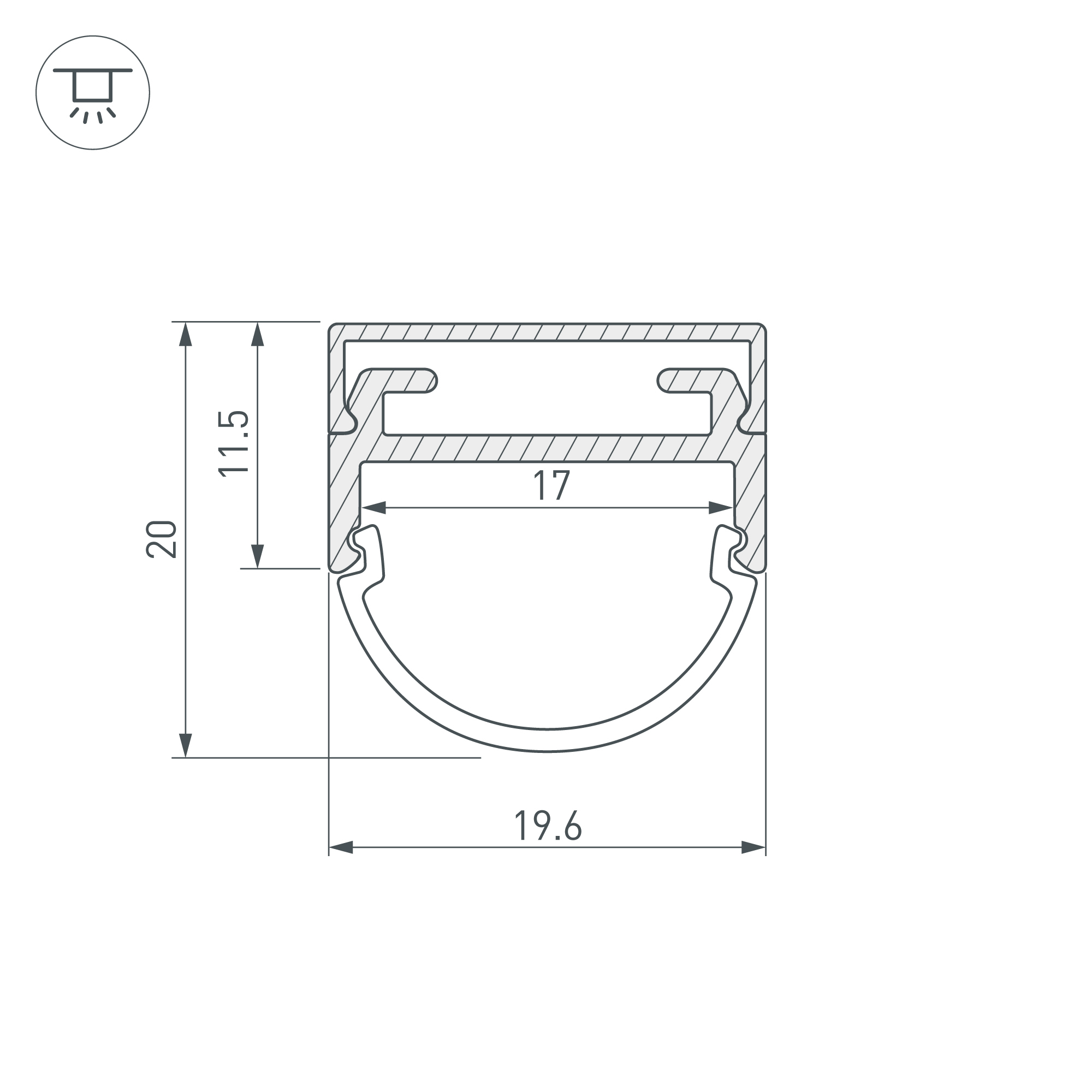 Алюминиевый анодированный профиль для светодиодных лент и линеек. Состоит из двух частей - самого профиля и основания, со скрытой проводкой. Большой выбор круглых, квадратных, фигурных экранов и заглушек. Габаритные размеры (L×W×H): 2000x19,6x11,5 мм. Ширина площадки для ленты 17 мм. Экраны, заглушки и другие аксессуары приобретаются отдельно. Цена за 1 метр (профиль + основание).