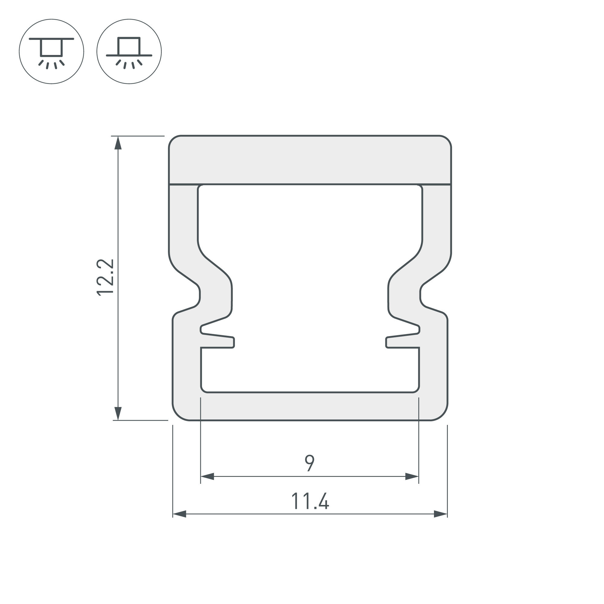 Цельнолитой пластиковый профиль со встроенным матовым экраном. Материал - PC. Для лент и линеек шириной до 8 мм. Размер 2000*11.4*12.2мм. Класс пылевлагозащиты – IP65 (при соблюдении технологии герметизации). Цена за 1м. Для лент и линеек максимальной мощностью 9,4 ВТ/м.