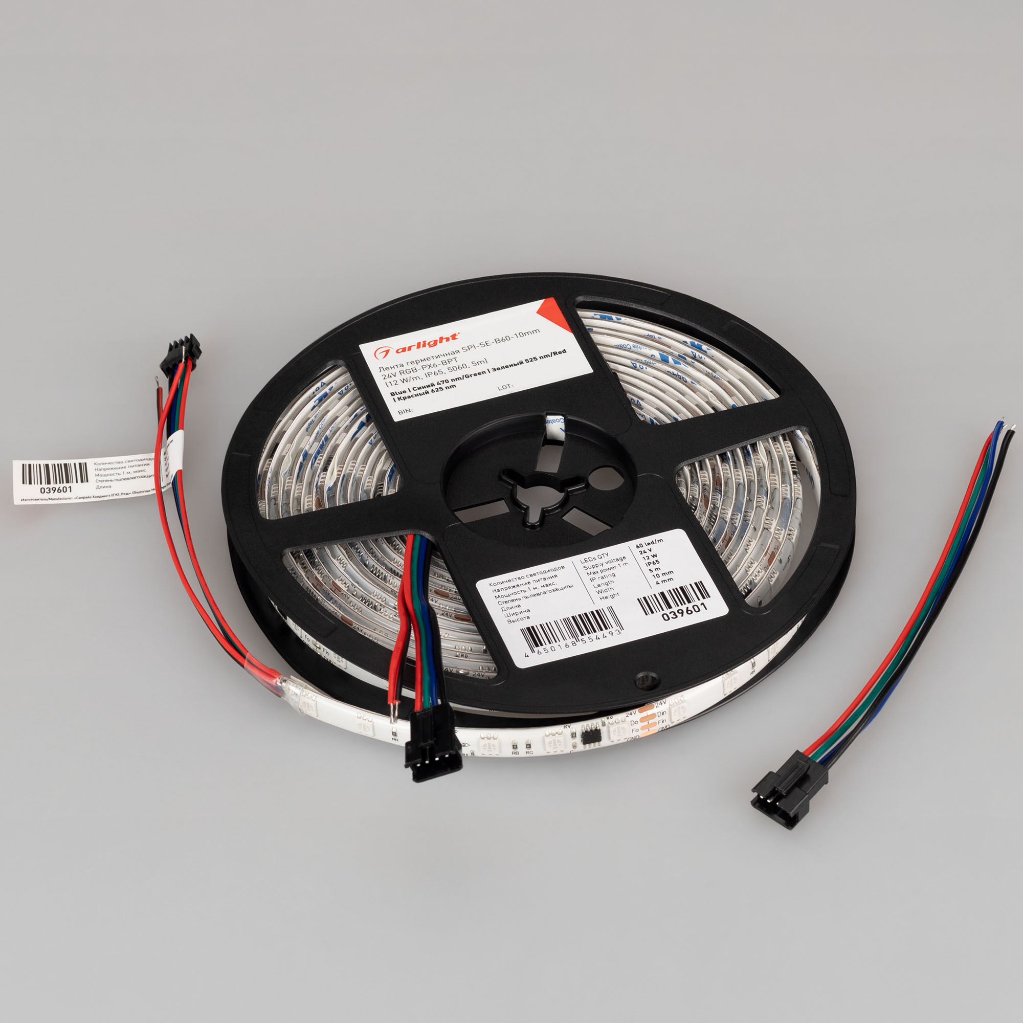 Светодиодная герметичная лента SPI серии B60 с микросхемой MT1808A, IP65 (SE- силиконовый верхний слой). Светодиоды SMD 5060, 60 шт/м, 10 pixels на 1 м (50 pixels на 5 м), 1 pixel = 6 светодиодов, белая плата шириной 10 мм, обход битого пикселя - BPT, скотч 3М. Цвет RGB, угол 120°. Питание 24 В, мощность 12 Вт/м (60 Вт на 5 м). Размеры 5000x10x4 мм. Мин. отрезок 100 мм, 6 светодиодов. Цена за 1 м.