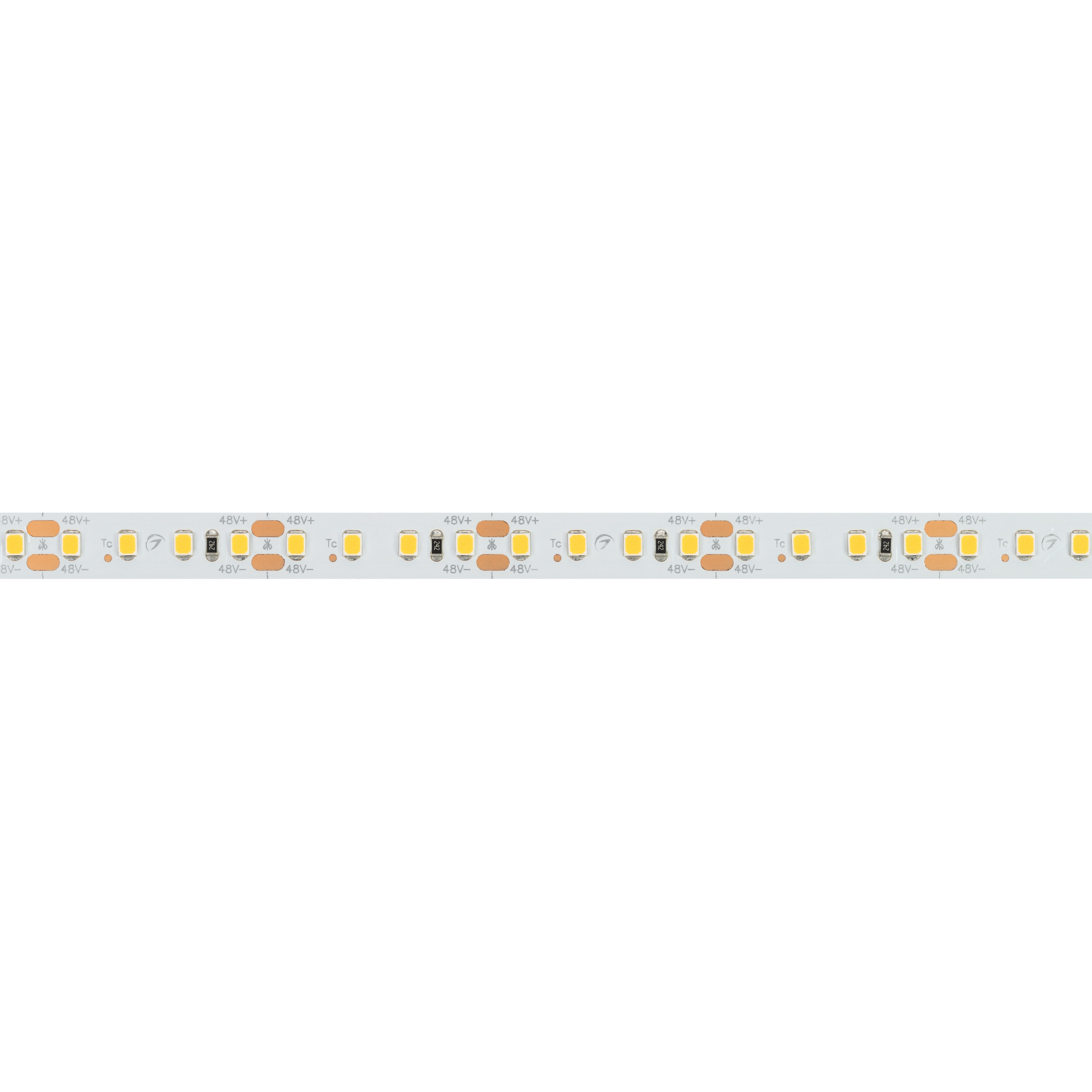 Светодиодная лента RT серии A120. Напряжение питания 48 В, мощность 9.6 Вт/м, ширина 10 мм. Длина подключения 30 м с одной стороны, лента без стабилизаторов. Светодиоды SMD 2835, 120 шт/м, теплого цвета свечения (3000K). Применяется для декоративной подсветки интерьеров, потолочных ниш, рабочих зон кухни, мебели, подсветки рекламных конструкций и витрин. Увеличенная длина подключения позволяет создавать длинные декоративные линии и организовать подсветку протяженных участков. Рекомендуется установка на профиль.