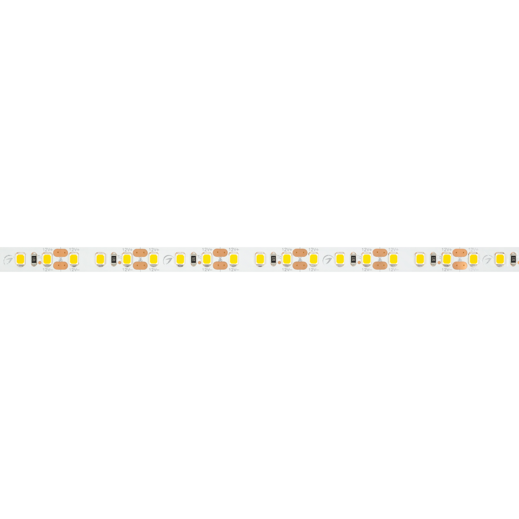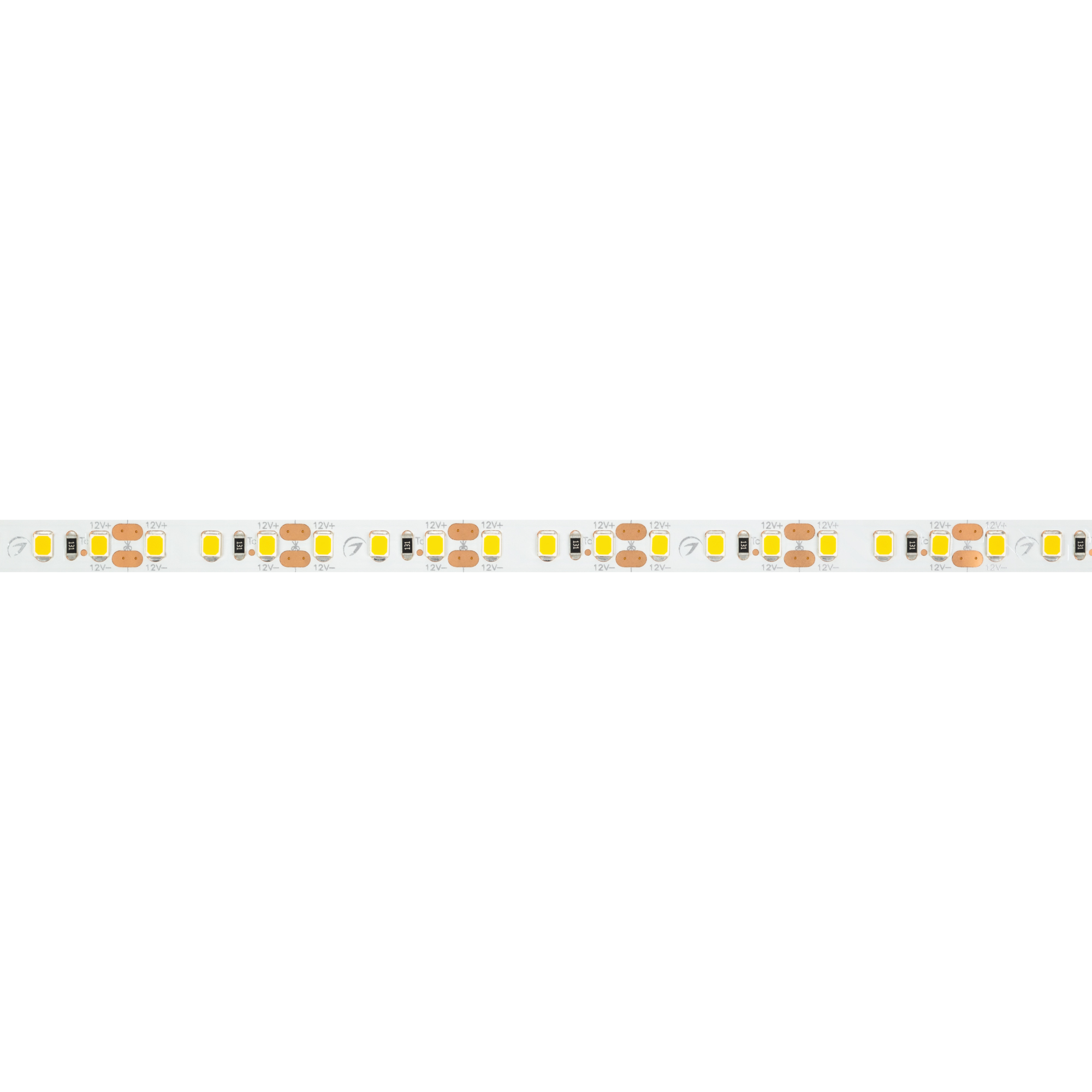 Светодиодная лента RT серии A120. Светодиоды SMD 2835, 120 шт/м, белая плата шириной 8 мм, скотч 3M. Цвет ТЕПЛЫЙ 3500K, индекс цветопередачи CRI>85, угол 120°. Питание 12 В, мощность 14.4 Вт/м (72 Вт на 5 м). Размеры 5000x8x1.5 мм. Мин. отрезок 25 мм, 3 светодиода. Цена за 1 м. Обязательна установка на алюминиевый профиль.