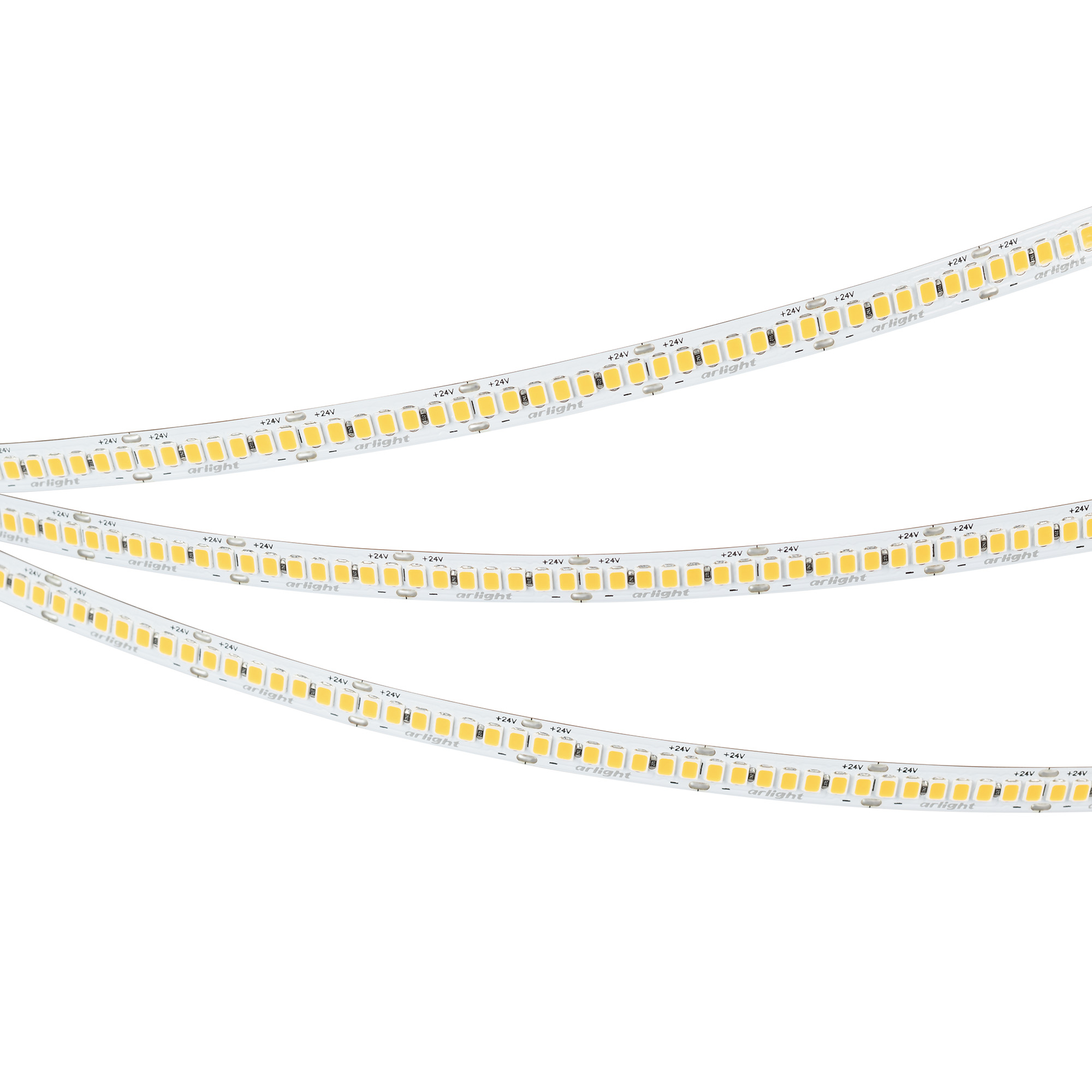 Светодиодная лента RT серии A280. Светодиоды SMD 2835, 280 шт/м, белая плата шириной 8 мм, скотч 3M. Цвет ТЕПЛЫЙ 3500K, индекс цветопередачи CRI>90, угол 120°. Питание 24 В, мощность 10 Вт/м (50 Вт на 5 м). Размеры 5000x8x1.3мм. Мин. отрезок 25 мм, 7 светодиодов. Цена за 1 м.