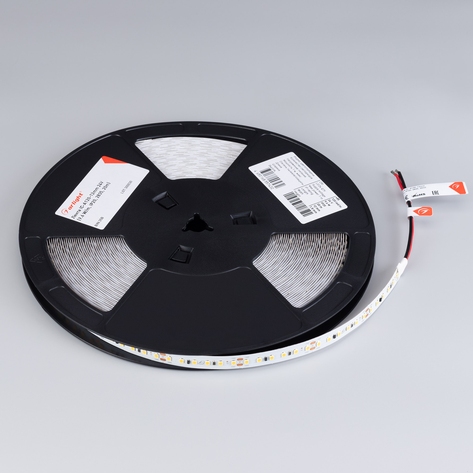 Стабилизированная светодиодная лента IC серии A120 шириной 12 мм, мощностью 9.6 Вт/м, с подключением до 20 м. Стабилизаторы тока обеспечивают равномерное свечение теплого цвета (3500K) по всей длине при подключении с одной стороны. Напряжение питания 24 В. Светодиоды SMD 2835, 120 шт/м. Индекс цветопередачи CRI>85. Минимальный отрезок 50 мм (6 светодиодов). Лента совместима с любыми диммерами ШИМ. Применяется для декоративной подсветки потолочных ниш, создания длинных непрерывных световых линий, контуров рекламных объектов.
