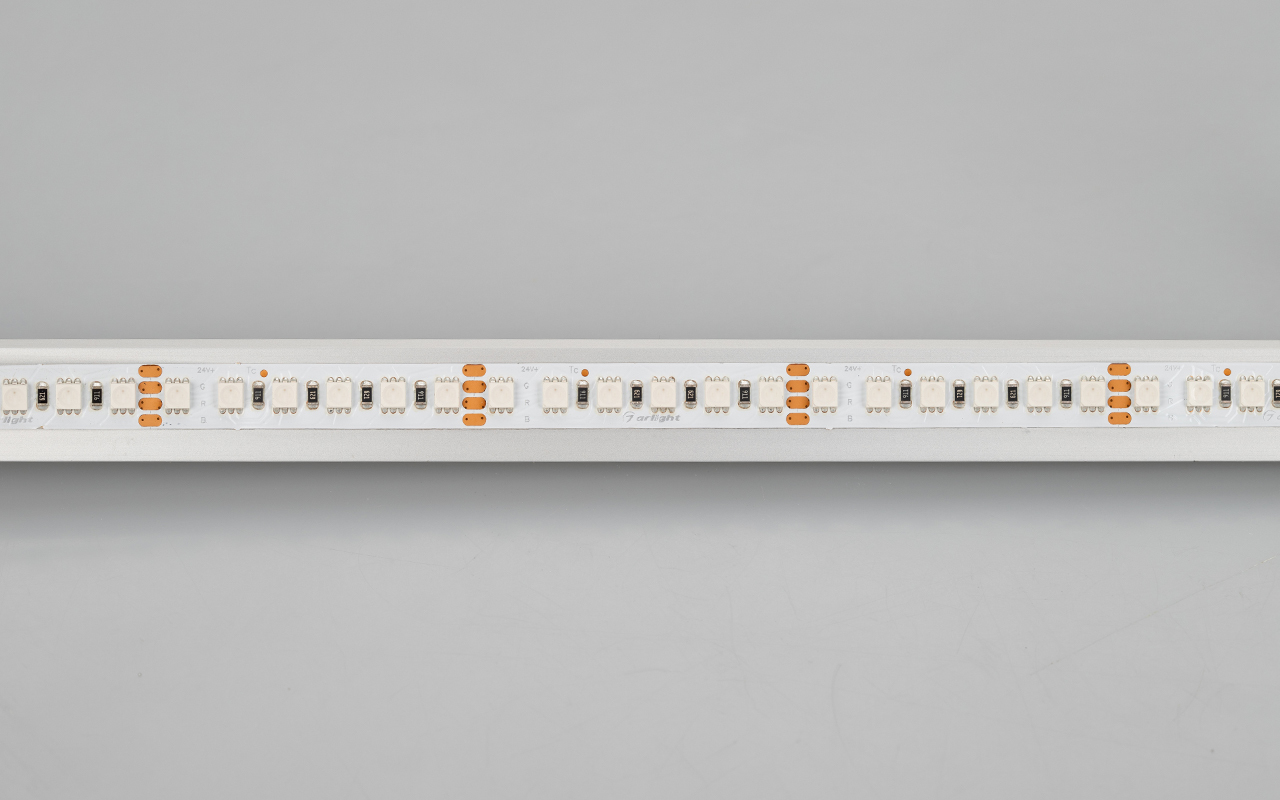 Мультицветная лента LUX шириной 10 мм с RGB-светодиодами SMD 4040 (120 шт/м). Мощность 13.2 Вт/м, напряжение питания 24 В. Плотная установка светодиодов позволяет скрыть видимость точек светодиодов в профиле небольшой глубины с матовым экраном. Управляется RGB-контроллером. Мультицветная подсветка ниш, декора. Световые линии с изменяемым цветом свечения. Минимальный отрезок 50 мм (6 светодиодов).