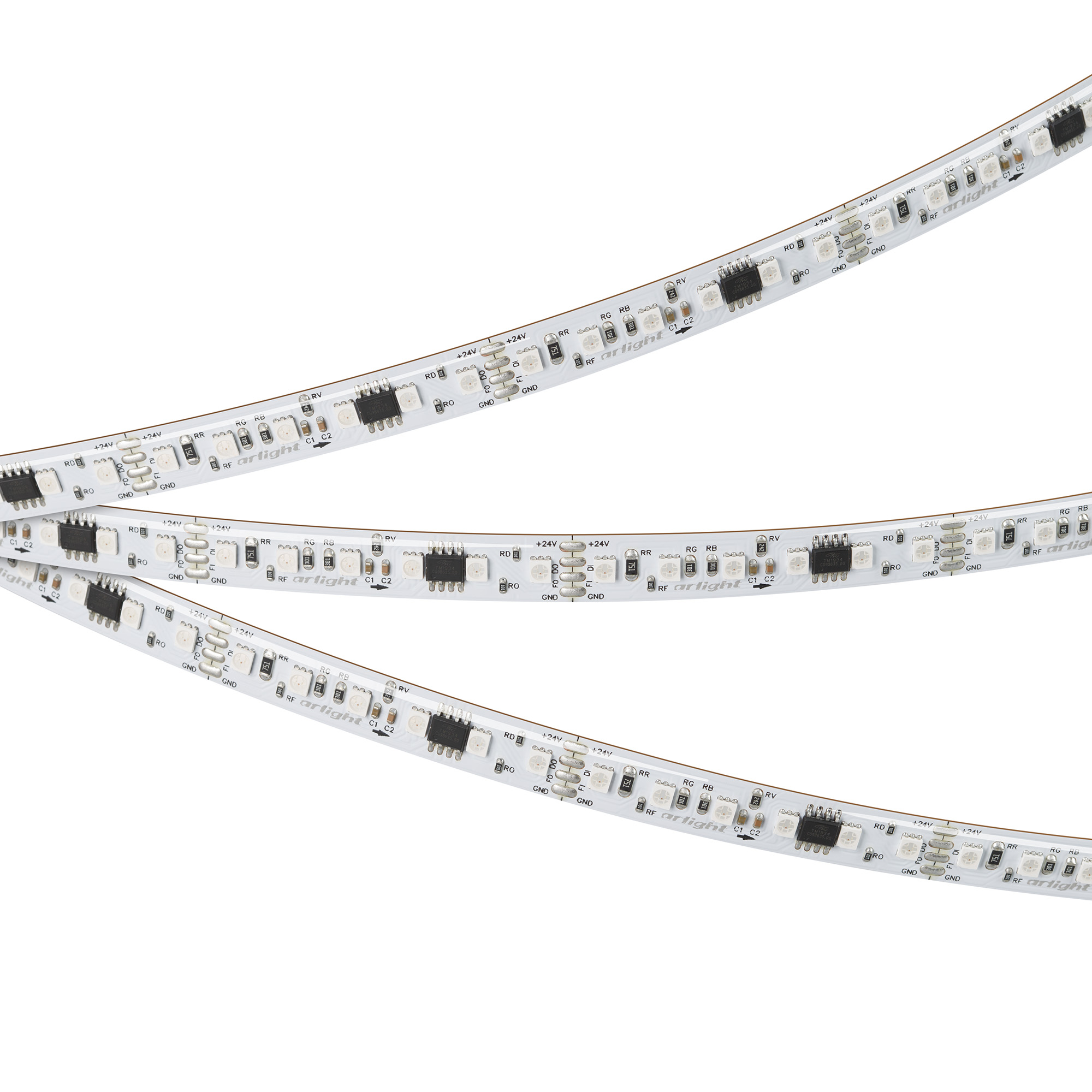 Светодиодная герметичная лента SPI серии A120 с микросхемой TM1934, IP65 (SE - силиконовый верхний слой). Светодиоды SMD 2835, 120 шт/м, 20 pixels на 1 м (100 pixels на 5 м), 1 pixel = 6 светодиодов, белая плата шириной 10 мм, скотч 3М. Цвет RGB, угол 120°. Питание 24 В, мощность 23 Вт/м (115 Вт на 5 м). Размеры 5000x10x2.4 мм. Мин. отрезок 50 мм, 6 светодиодов. Цена за 1 м.