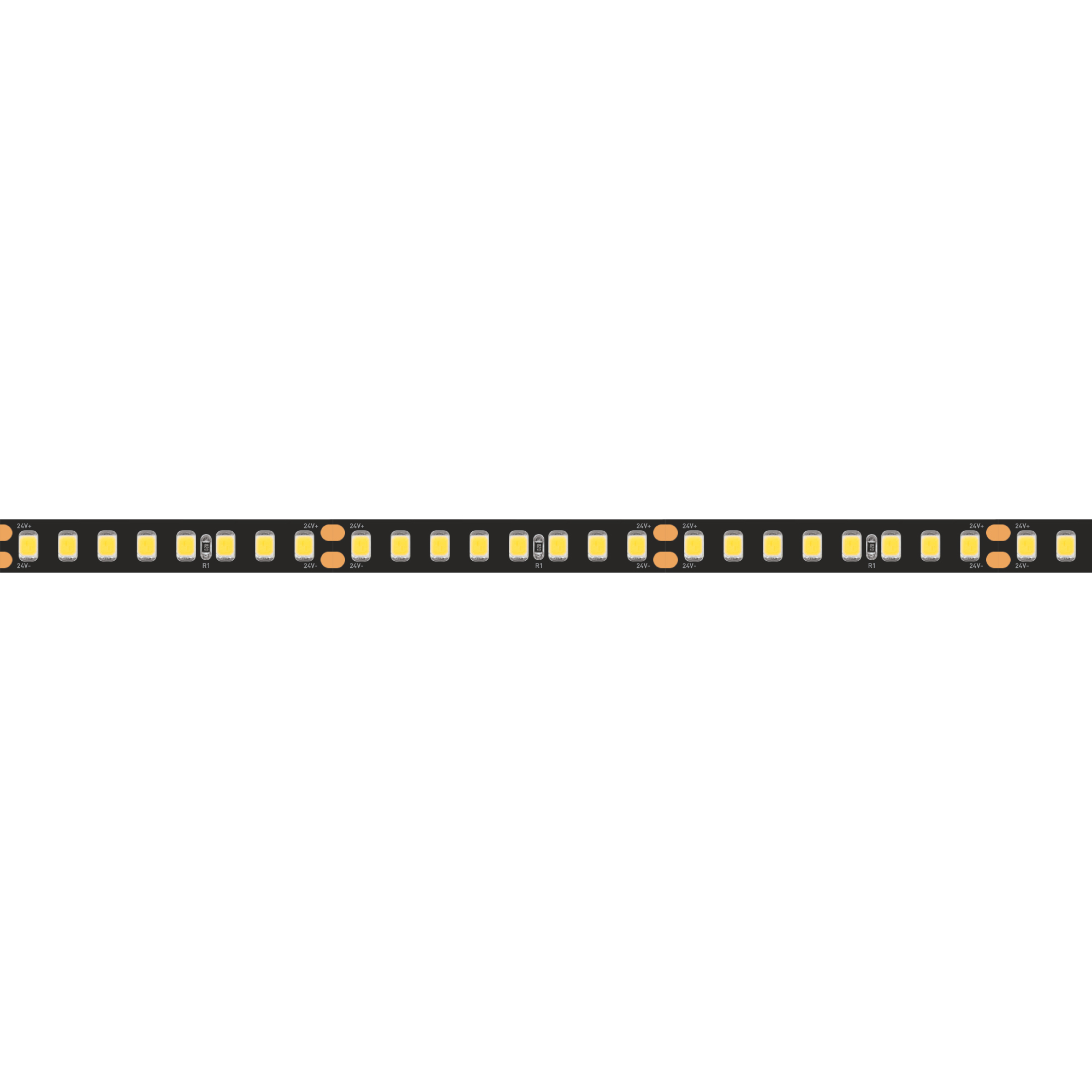 Светодиодная высокоэффективная лента RT серии A160. Светодиоды SMD 2835, 160 шт/м, черная плата шириной 8 мм, скотч 3M. Цвет ТЕПЛЫЙ 3000K, высокая световая эффективность 150 лм/Вт, индекс цветопередачи CRI>85, угол 120°. Питание 24 В, мощность 12 Вт/м (60 Вт на 5 м). Размеры 5000x8x1.5 мм. Мин. отрезок 50 мм, 8 светодиодов. Цена за 1 м.
