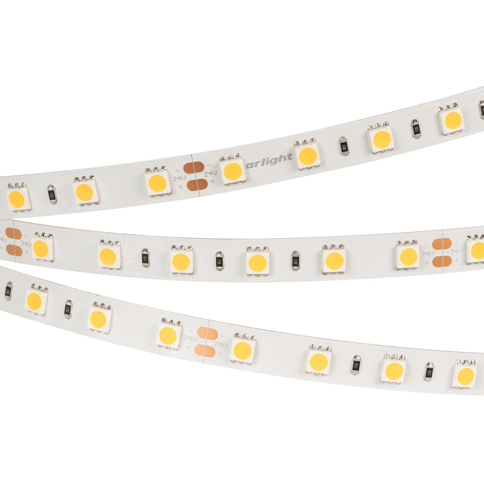 Светодиодная лента RT серии B60. Светодиоды 5060, 60 шт/м, белая плата шириной 10 мм, скотч 3M. Цвет ДНЕВНОЙ 4000K, индекс цветопередачи CRI>85, угол 120°. Питание 24 В, мощность 14.4 Вт/м (72 Вт на 5 м). Размеры 5000x10x2.2 мм. Мин. отрезок 100 мм, 6 светодиодов. Цена за 1 м.