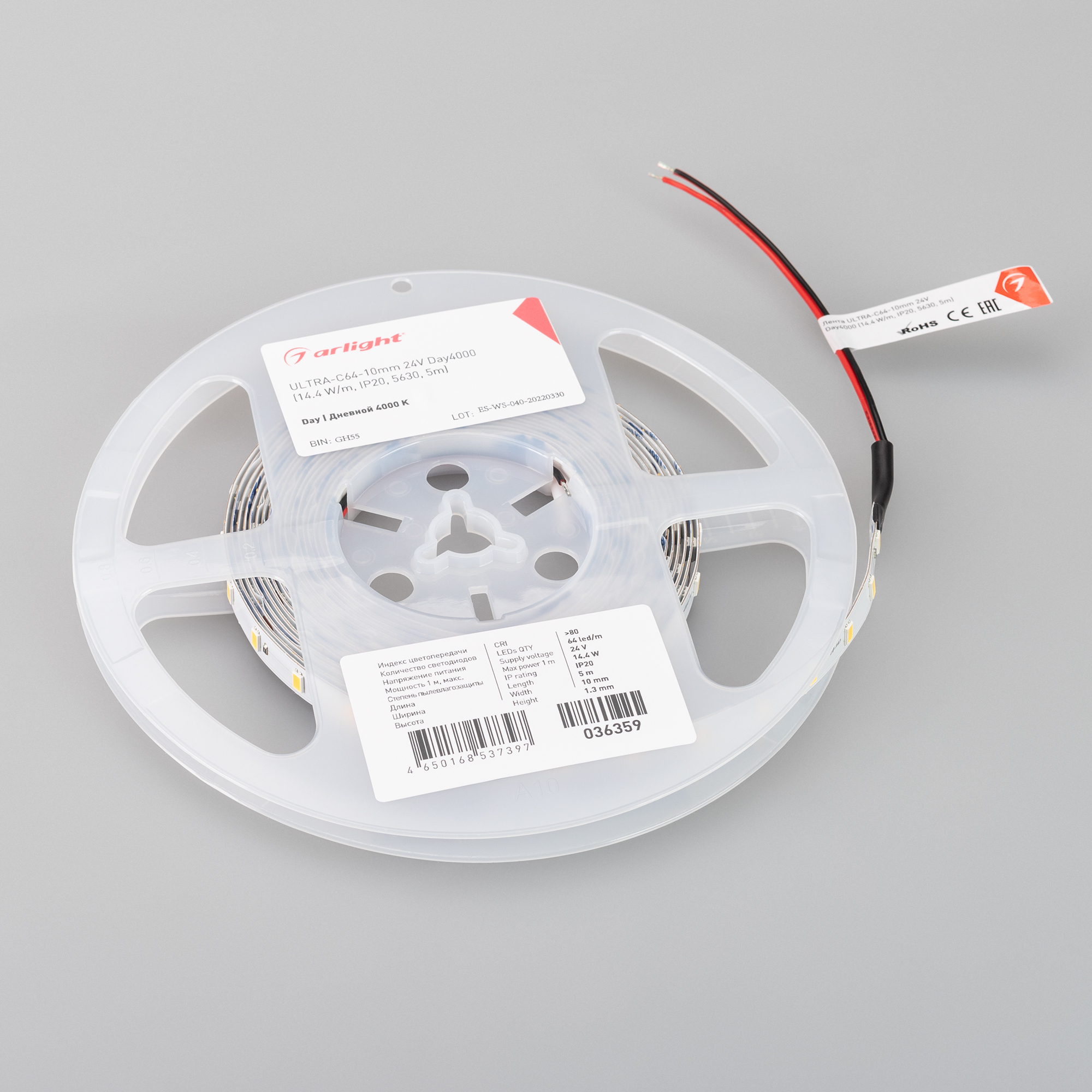 Светодиодная лента ULTRA серии C64 с высокой световой эффективностью 160 лм/Вт, шириной 10 мм, мощностью 14.4 Вт/м, дневного цвета свечения (4000K). Напряжение питания 24 В. Светодиоды SMD 5630, 64 шт/м. Индекс цветопередачи CRI>80. Предназначена для применения в основном освещении жилых и офисных помещений, создания светильников на основе алюминиевого профиля, подсветка рекламных конструкций и витрин, декоративная подсветка потолков, ниш, колонн. Минимальный отрезок 125 мм (8 светодиодов). Обязательна установка на алюминиевый профиль.