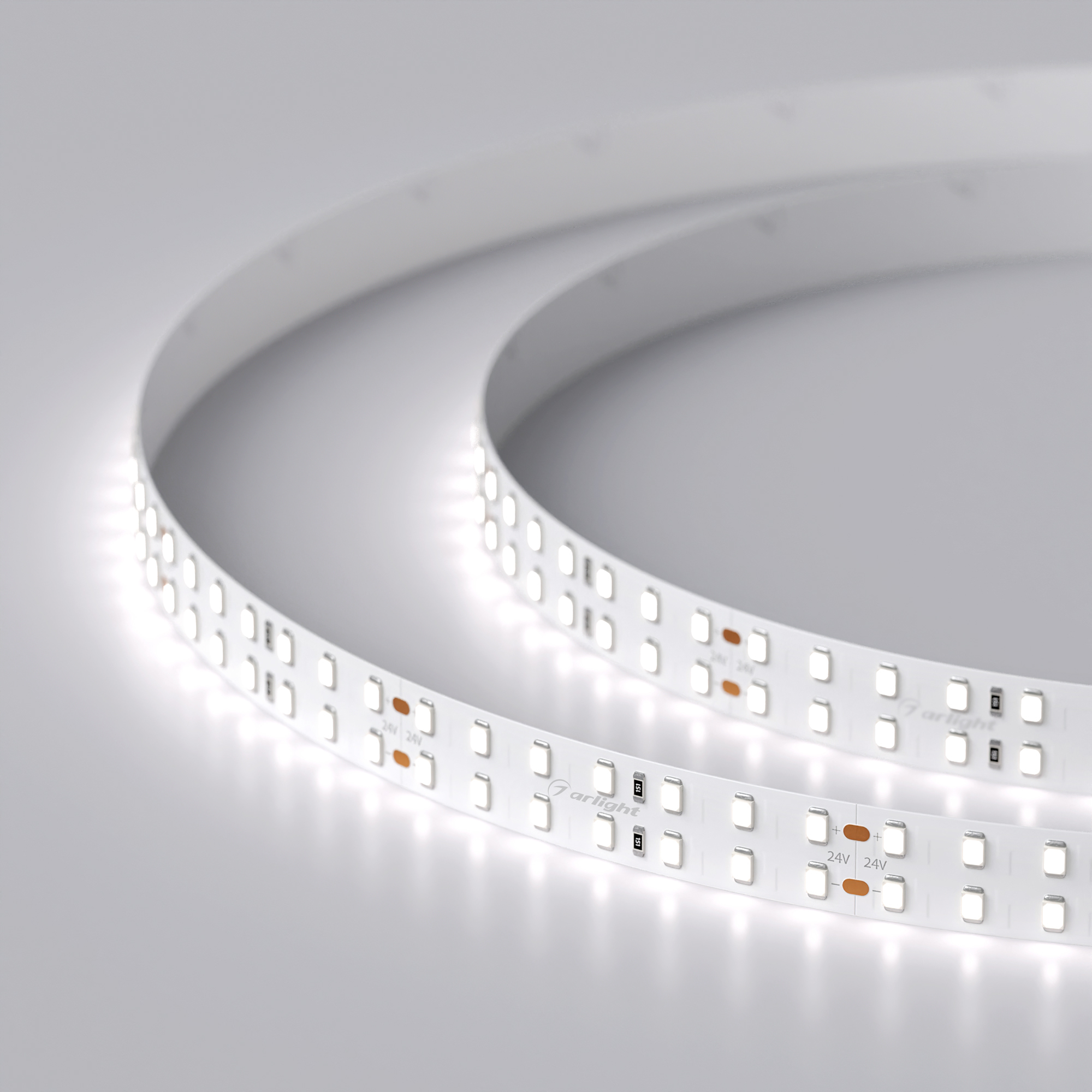 Светодиодная широкая лента RT серии A196. Светодиоды 2835, 196 шт/м, белая плата шириной 15 мм, скотч 3M. Цвет БЕЛЫЙ 6000K, индекс цветопередачи CRI>85, угол 120°. Питание 24 В, мощность 20 Вт/м (100 Вт на 5 м). Размеры 5000x15x1.5 мм. Мин. отрезок 71.43 мм, 14 светодиодов. Цена за 1 м.