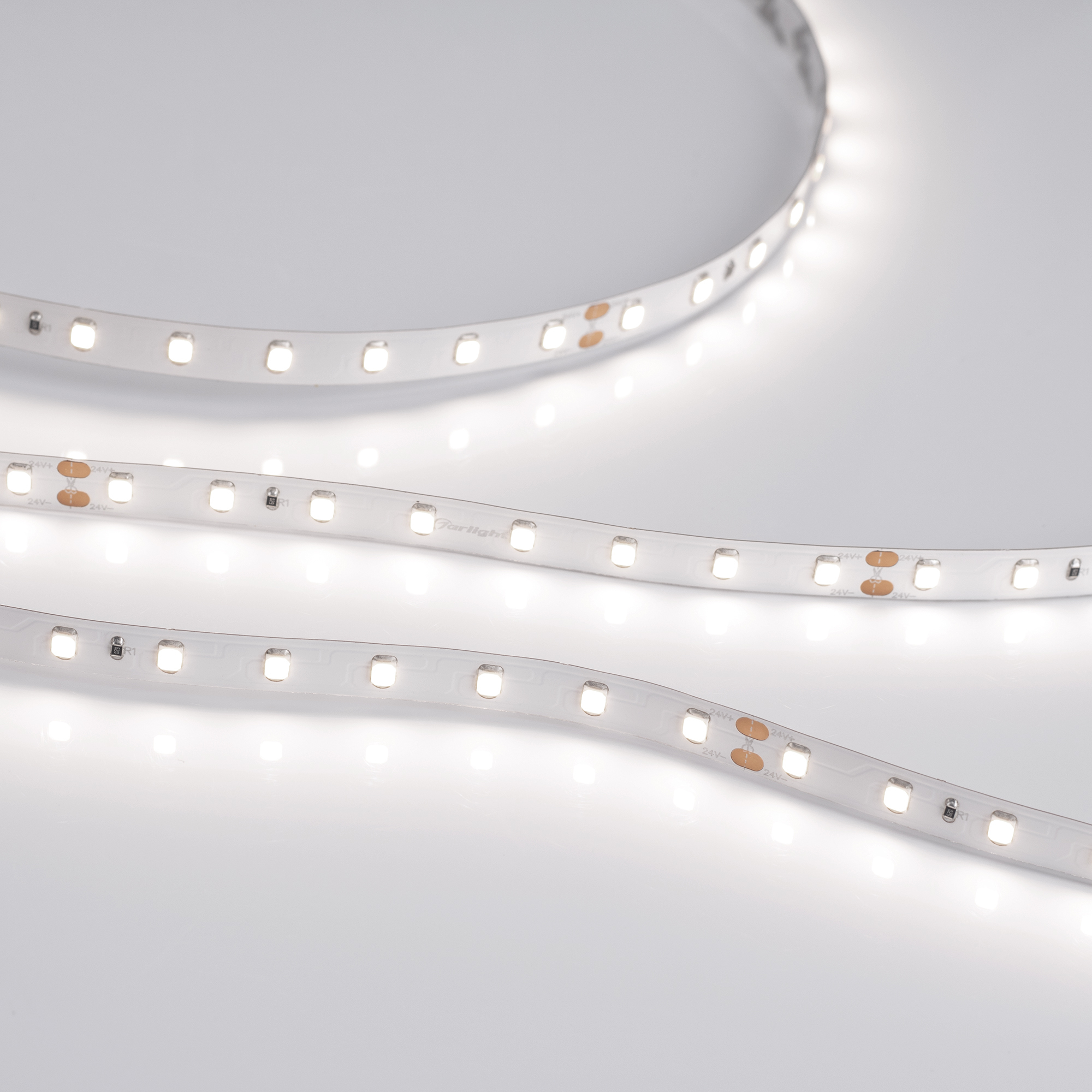 Светодиодная высокоэффективная лента RT серии A80 (монтажная бобина 50 м). Светодиоды SMD 2835, 80 шт/м, белая плата шириной 8 мм, скотч 3M. Цвет ДНЕВНОЙ 4000K, высокая световая эффективность 150 лм/Вт, индекс цветопередачи CRI>85, угол 120°. Питание 24 В, мощность 6 Вт/м (300 Вт на 50 м). Размеры 50000x8x1.5 мм. Мин. отрезок 100 мм, 8 светодиодов. Цена за 1 м. Разрезать перед подключением. Макс. длина подключения 5 м.