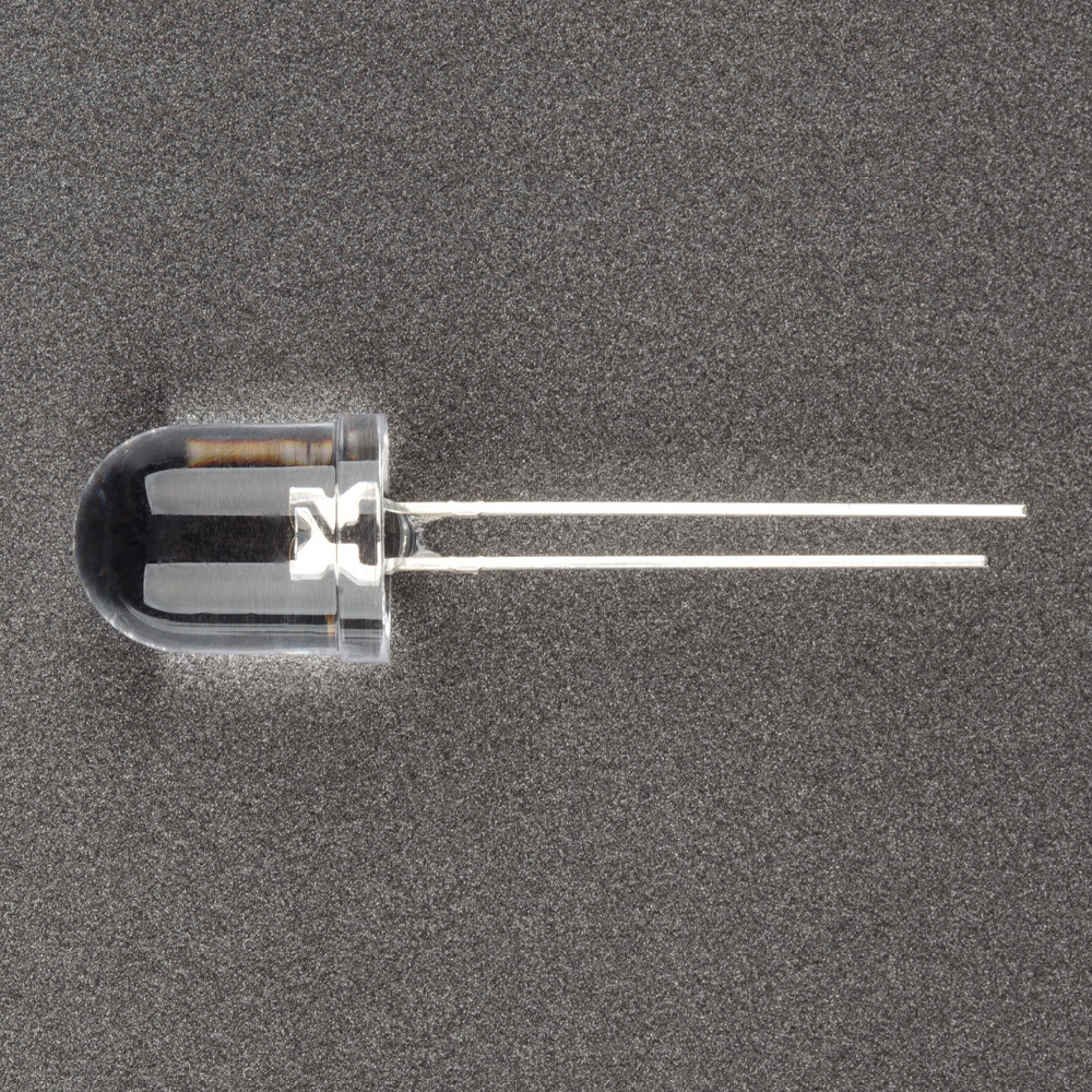 Поставка под заказ от 5000 шт. Выводной круглый светодиод, d=10 мм, прозрачная линза. Цвет свечения ультрафиолетовый (400 нм). Угол излучения 20°. Сила света Iv=1000-2000 мкд, If=20 мА. VF=3.8 В. Рекомендуемый постоянный рабочий ток <16-17 мА.