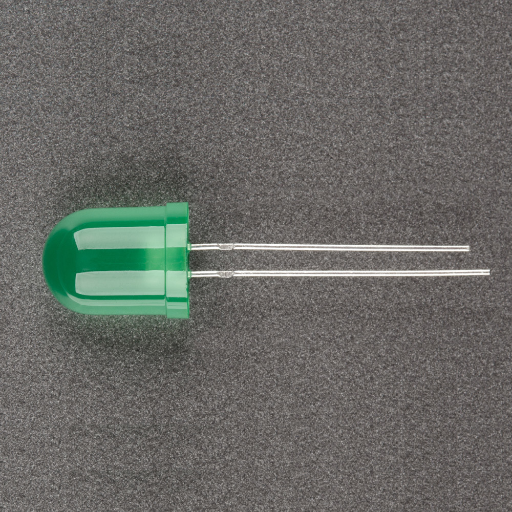 Поставка под заказ от 5000 шт. Выводной круглый светодиод, d=10 мм, диффузная зеленая линза. Цвет свечения зеленый (565-570 нм). Угол излучения 40-60°. Сила света Iv=100-250 мкд, If=20 мА. VF=1.8-2.4 В. Рекомендуемый постоянный рабочий ток <16-17 мА.