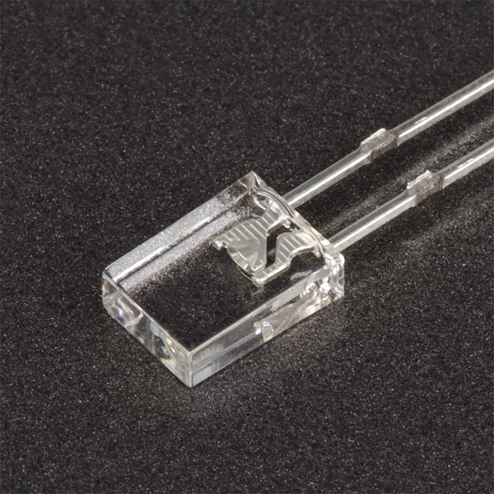 Поставка под заказ от 5000 шт. Выводной прямоугольный светодиод, 2×5×7 мм, прозрачная линза. Цвет свечения красный (625 нм). Угол излучения 80°. Сила света Iv=1000-2000 мкд при If=20 мА. VF=1.9-2.3 В. Рекомендуемый постоянный рабочий ток <16-17 мА.