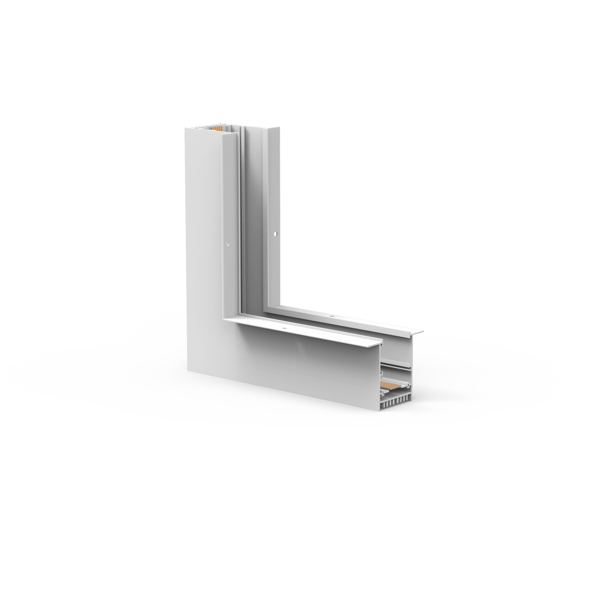Угловой внутренний коннектор MAG-CON-4560-F-L90-INT для встраиваемого трека MAG-TRACK-4560-F. Напряжение питания 24 В. Аксессуары для соединения с треком приобретаются отдельно.