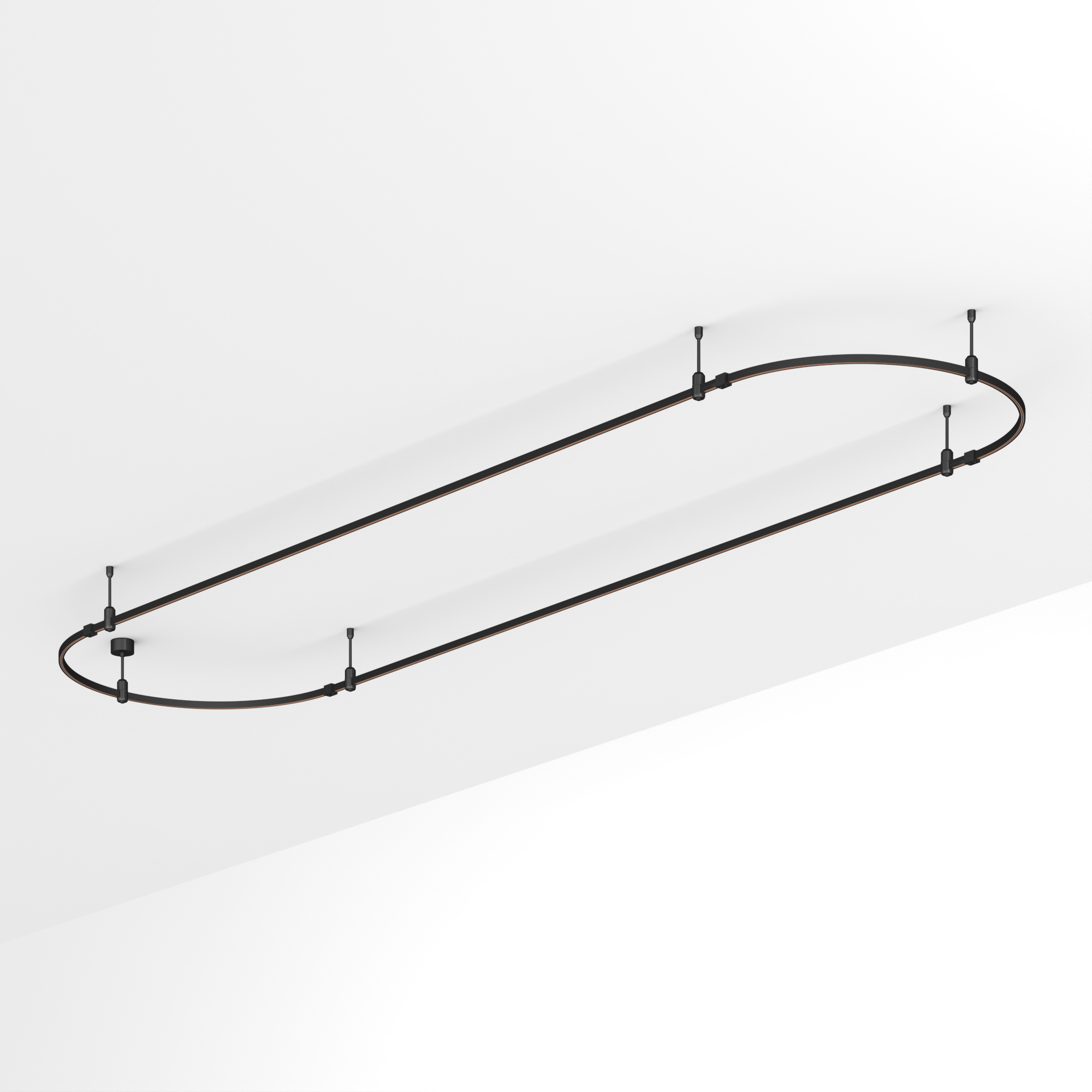 Подвесная конструкция APRIORI, форма овал. В комплекте треки с аксессуарами и жесткими подвесами длиной 200мм. DC48V. Материал алюминий, цвет черный. Размер ДxШxВ: 4000x1000x22мм. Светильники и источники питания приобретаются отдельно.