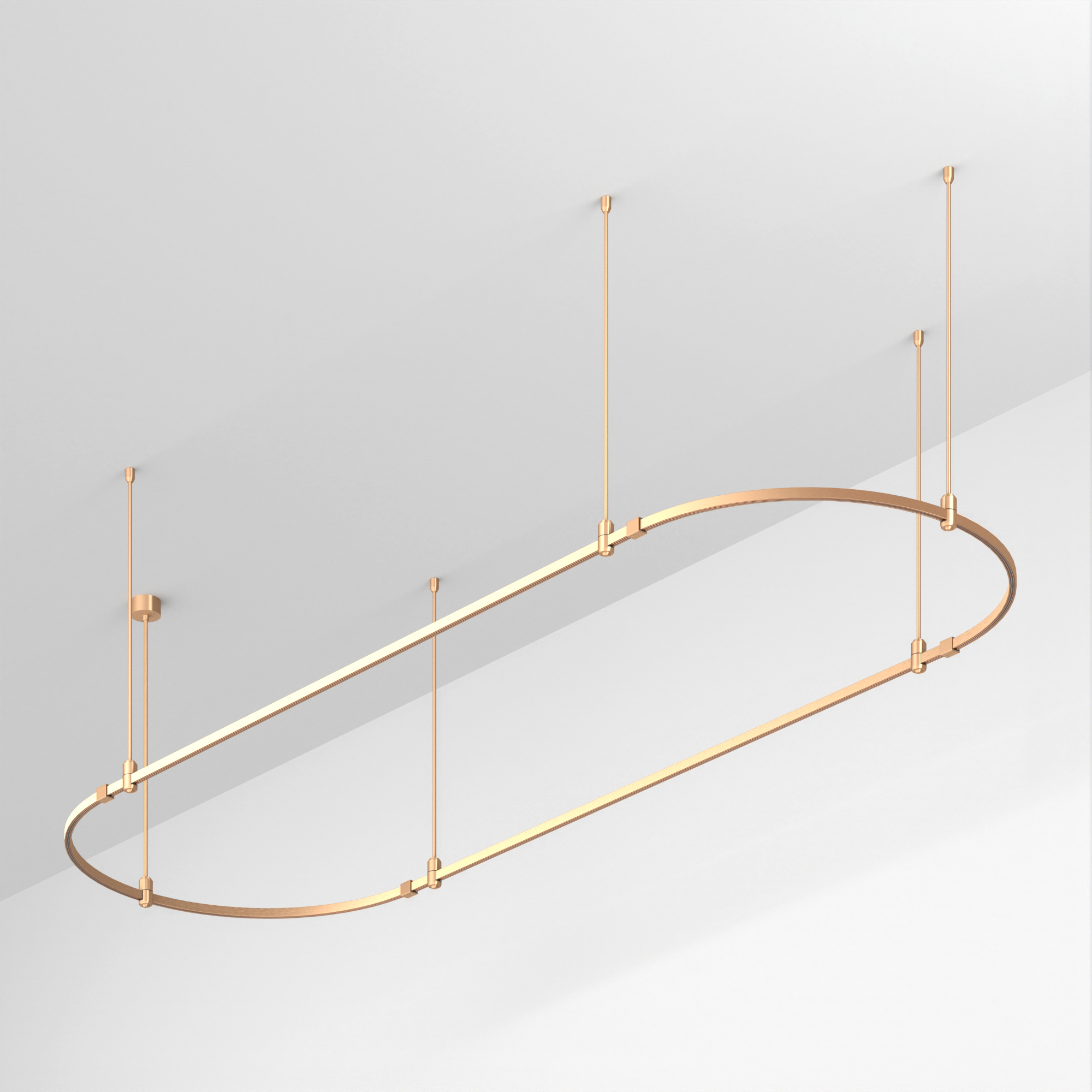 Подвесная конструкция APRIORI, форма овал. В комплекте треки с аксессуарами и жесткими подвесами длиной 800мм. DC48V. Материал алюминий, цвет светлое золото. Размер ДxШxВ: 3000x1000x22мм. Светильники и источники питания приобретаются отдельно.