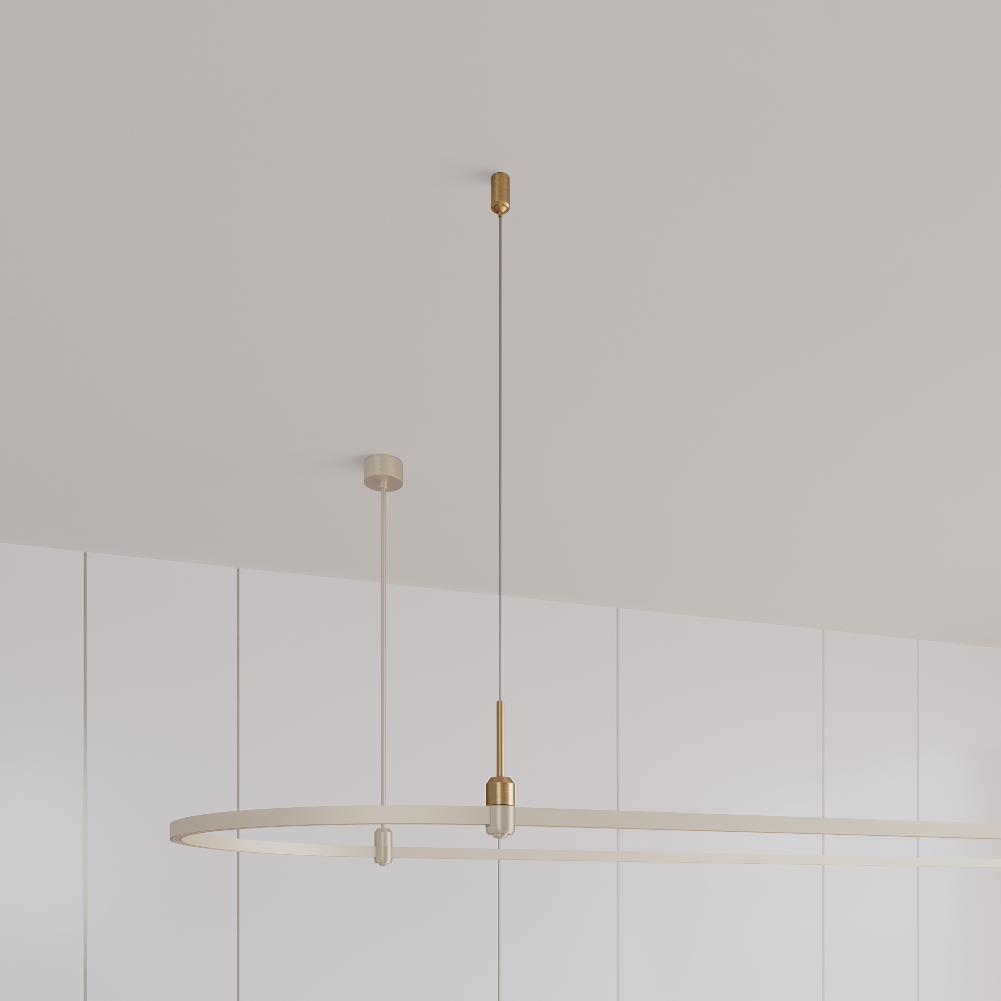 Подвес гибкий с регулируемым тросом для подвесного монтажа треков системы APRIORI. Тип крепления A. Не проводит электричество. Размер: Ø20 х 1500 х Ø38 мм. Материал алюминий, цвет светлое золото.