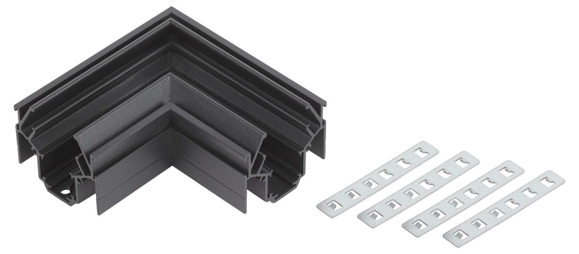 Угловой коннектор для магнитного трекового шинопровода NOVA TRM-PC20. Материал - Алюминий. Коннектор предназначен для механического соединения двух отрезков шинопровода под прямым углом на плоскости.