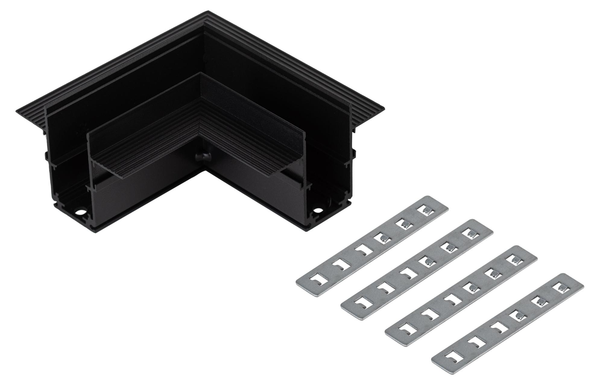 Угловой коннектор для встраиваемого магнитного шинопровода NOVA TRM-R20. Материал - Алюминий. Коннектор предназначен для механического соединения двух отрезков шинопровода под прямым углом на плоскости.
