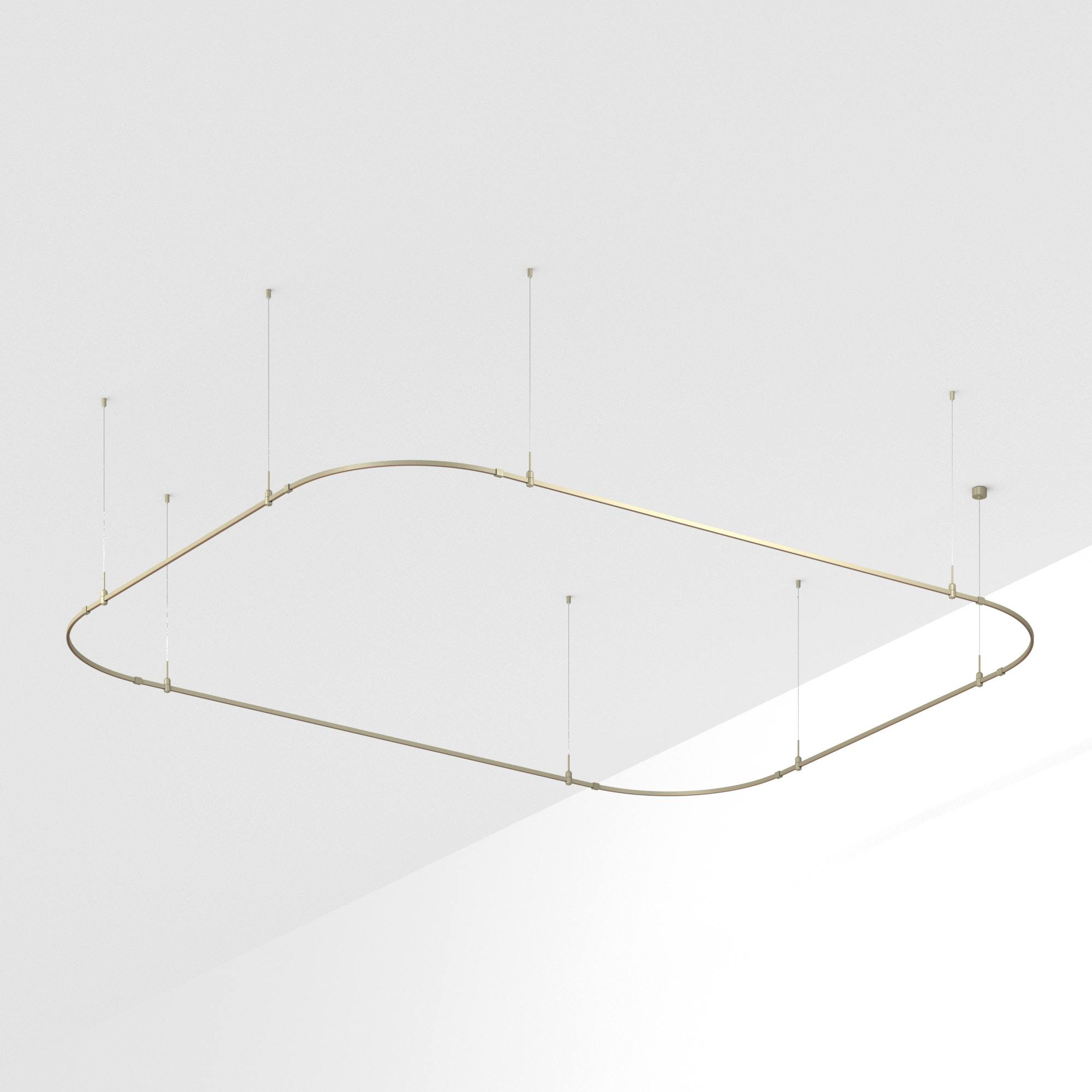 Подвесная конструкция APRIORI, форма закруглённый прямоугольник. В комплекте треки с аксессуарами и гибкими подвесами. DC48V. Материал алюминий, цвет серо-оливковый. Размер ДxШxВ: 4500x3500x22мм. Светильники и источники питания приобретаются отдельно.