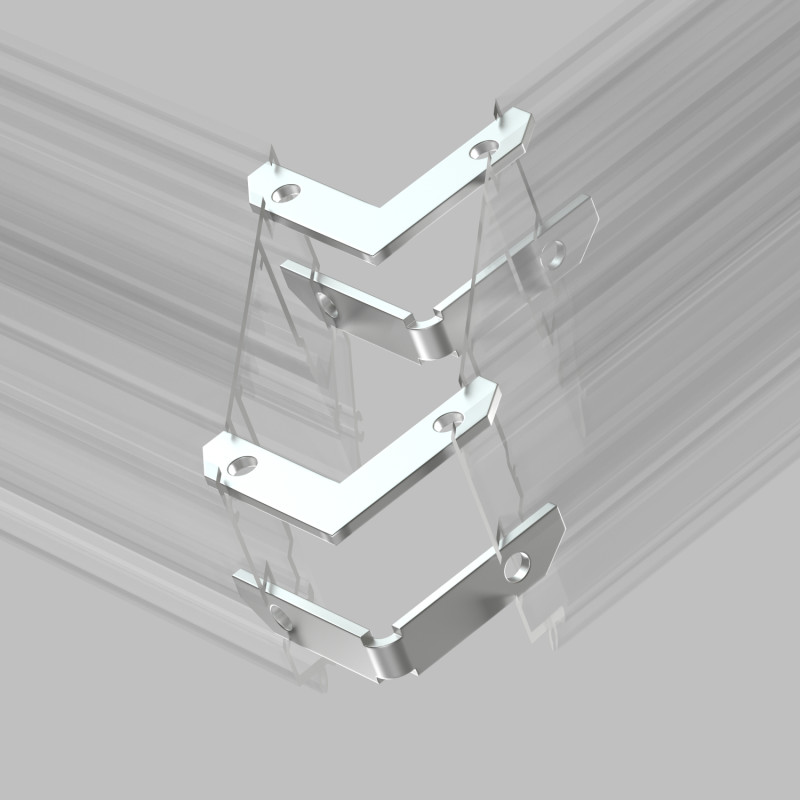 Комплект угловых механических соединителей Предназначен для механического соединения профилей SMART ONE между собой под углом 90°. В комплекте: 4 пластины, 8 винтов.