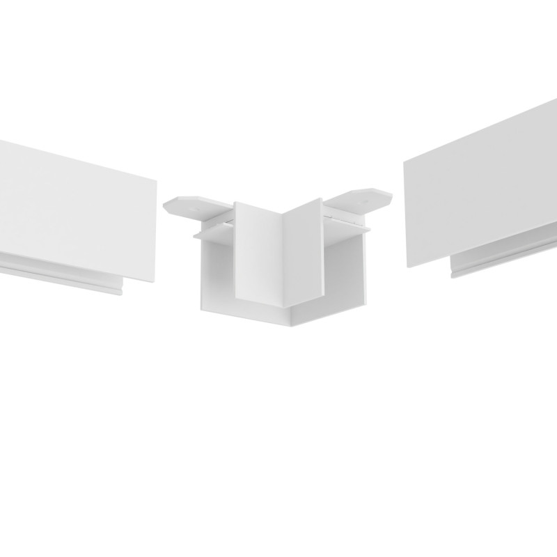 Базовая серия трековой системы DENKIRS SMART. Может быть установлена накладным или подвесным способом, а также встроена в гипсокартон с помощью специальных креплений. Может монтироваться в натяжные потолки из ПВХ-пленки при помощи профиля SMART PROFI.Для создания угла 90° в одной плоскости. Соединительные пластины в комплекте. Гибкий электрический коннектор TR2103 приобретается отдельно