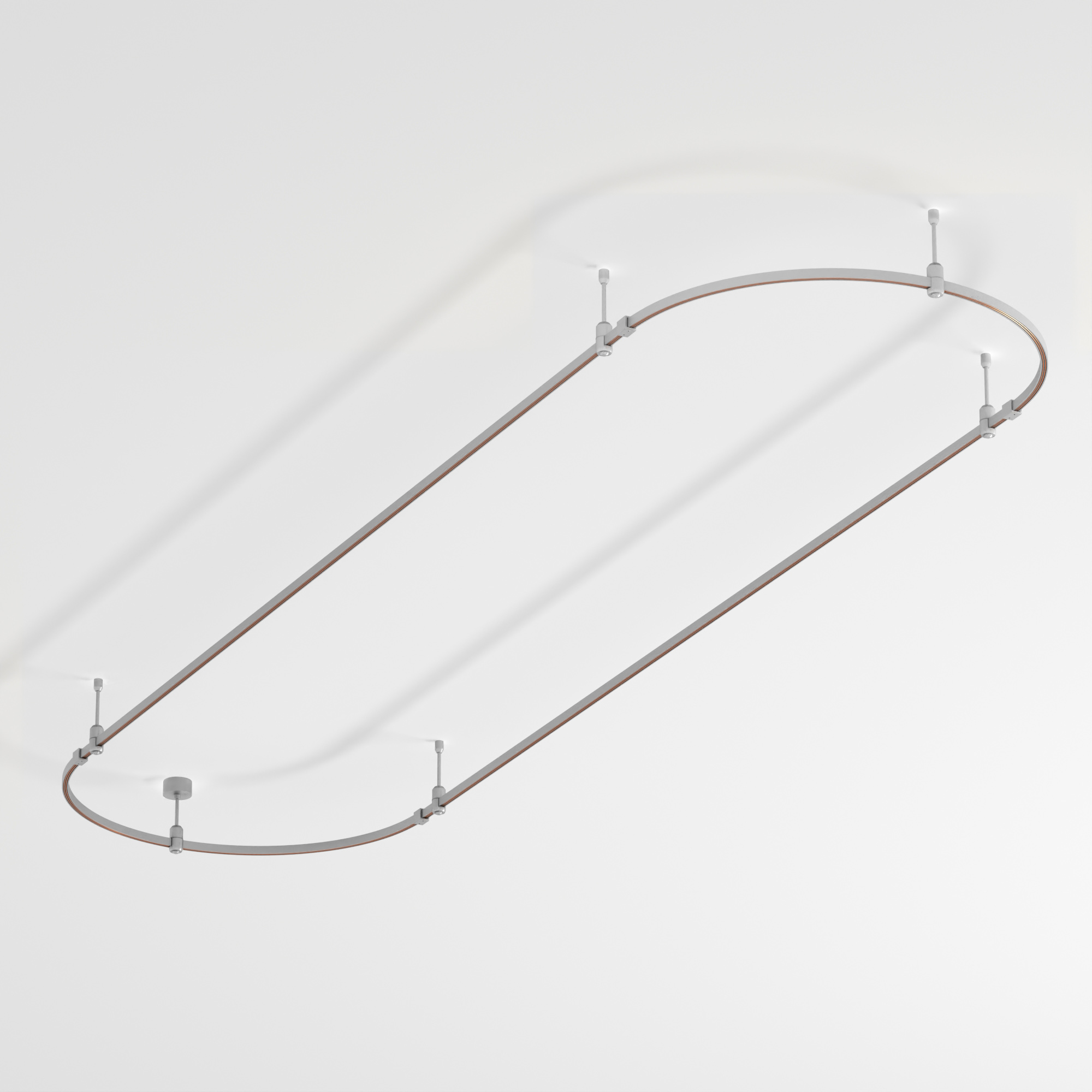 Подвесная конструкция APRIORI, форма овал. В комплекте треки с аксессуарами и жесткими подвесами длиной 200мм. DC48V. Материал алюминий, цвет титан. Размер ДxШxВ: 3000x1000x22мм. Светильники и источники питания приобретаются отдельно.
