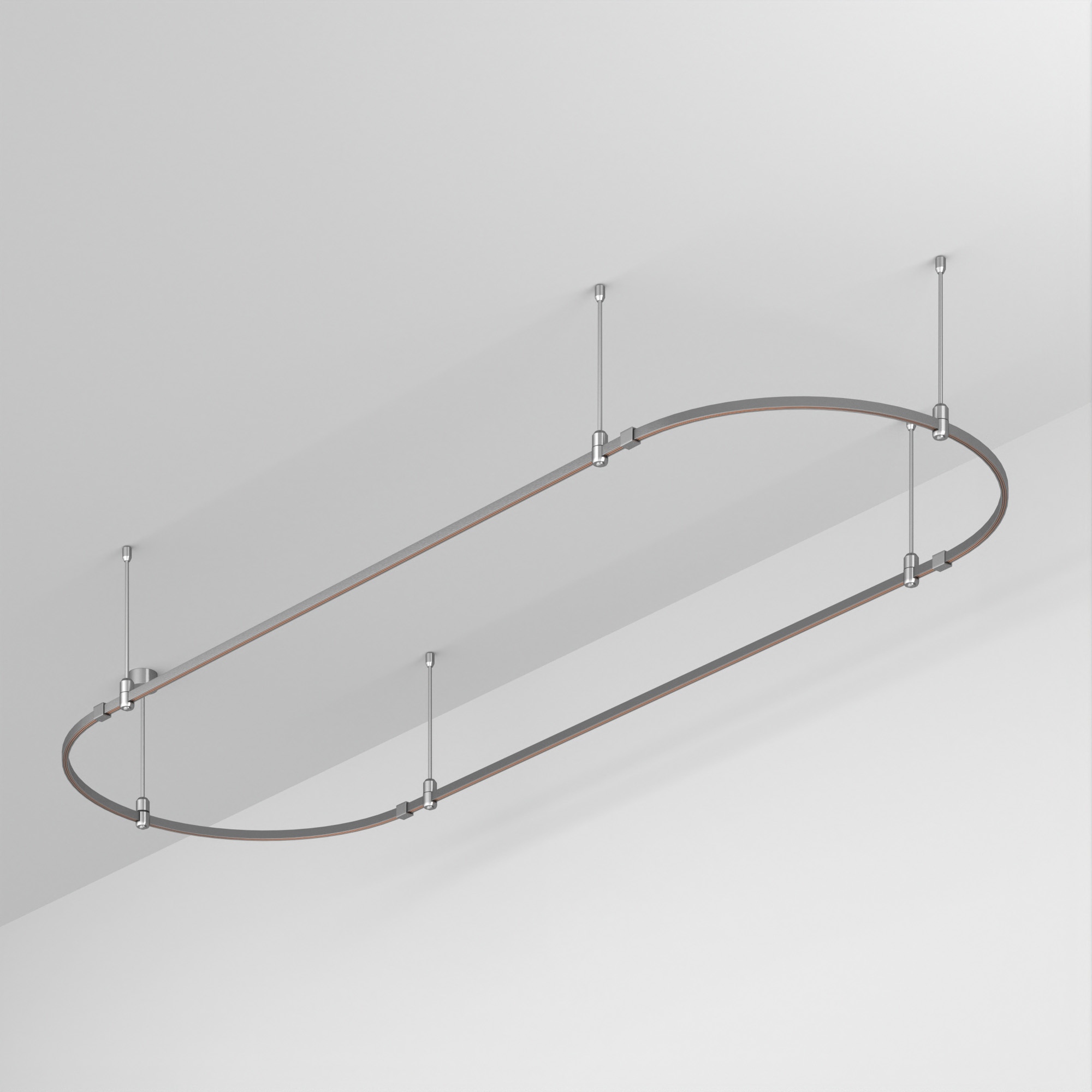 Подвесная конструкция APRIORI, форма овал. В комплекте треки с аксессуарами и жесткими подвесами длиной 400мм. DC48V. Материал алюминий, цвет титан. Размер ДxШxВ: 3000x1000x22мм. Светильники и источники питания приобретаются отдельно.