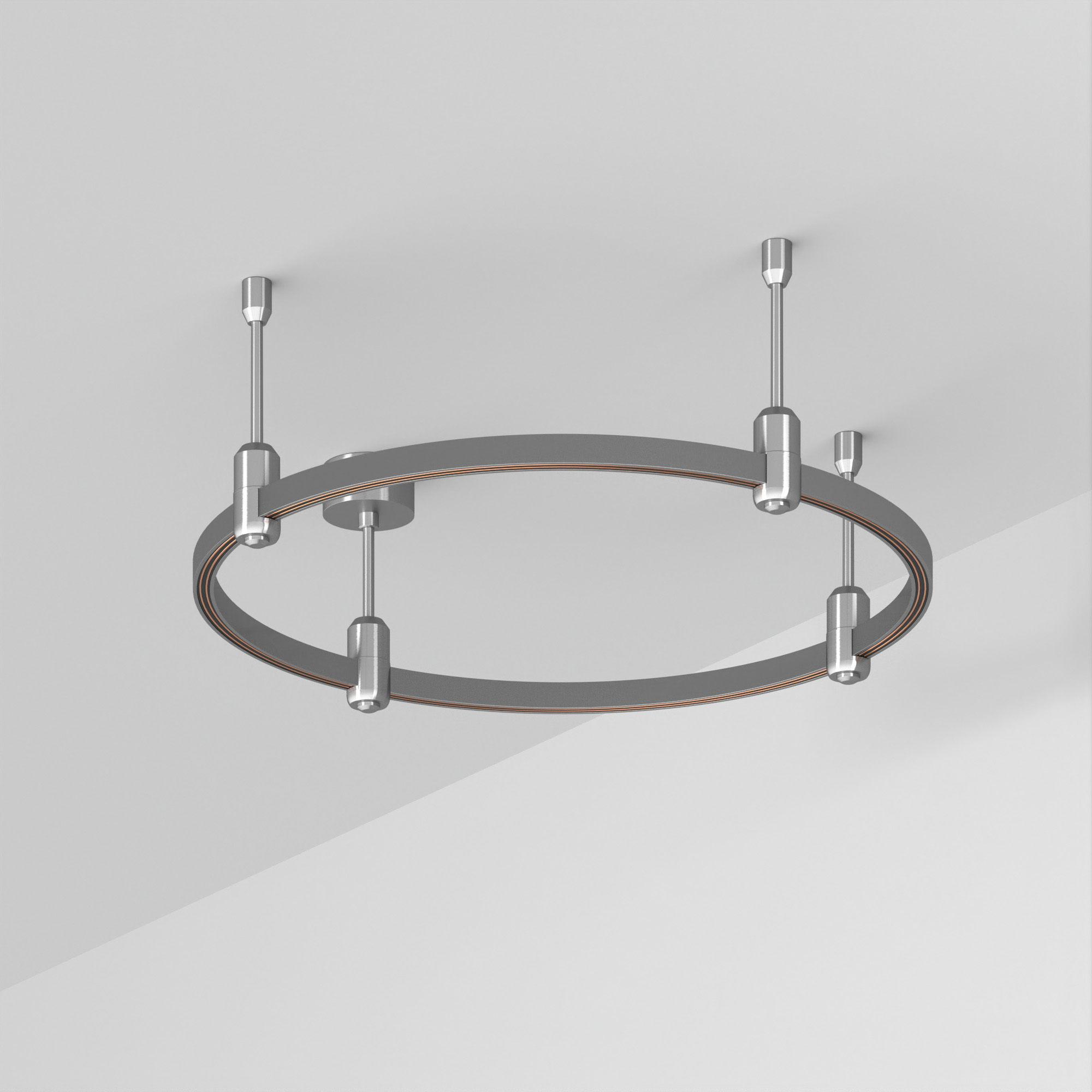 Подвесная конструкция APRIORI, форма круг. В комплекте треки с аксессуарами и жесткими подвесами длиной 200мм. DC48V. Материал алюминий, цвет титан. Размер: диаметр 600мм, высота 22мм. Светильники и источники питания приобретаются отдельно.
