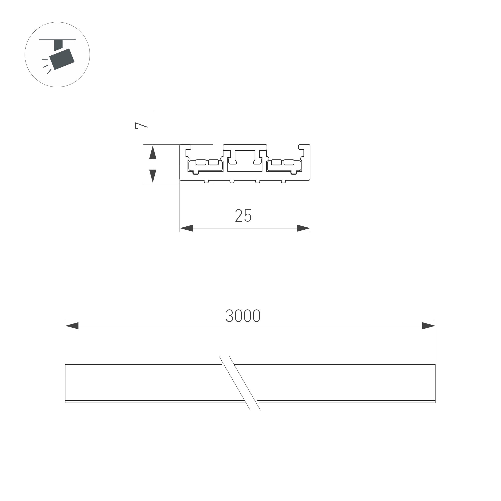 Накладной магнитный трек MAG-VIBE-TRACK, длина 3000мм. DC48V. Материал алюминий, цвет белый. Размер ДxШxВ: 3000x25x7мм.