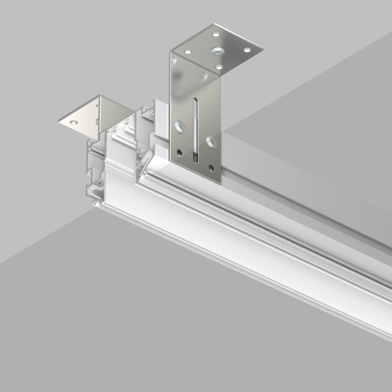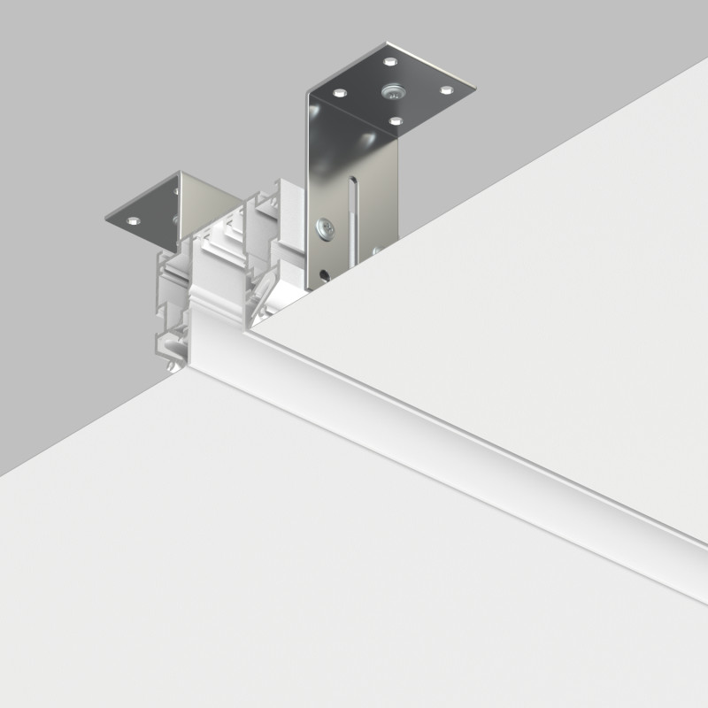 Профиль-трек 2в1: применяется для монтажа полотна натяжного потолка, а также, является треком системы SMART. Может нарезаться на отрезки произвольной длины. Внутренняя декоративная вставка, в виде двух отрезков по 3 метра, входит в комплект поставки.\nТрек-профиль SMART ONE оснащен системой крепления полотна типа Гарпун. Подходит для установки потолков из ПВХ пленки. Не требует приобретения отдельного трека для установки светильников. Подвод питания, соединительные элементы и прочие аксессуары приобретаются отдельно.\nАксессуары:\nTR3043-AL - комплект для прямого соединения двух треков.\nTR2027-AL – Комплект для соединения под углом 90 градусов (отрезки профиля предварительно необходимо торцевать под углом 45 градусов).\nTR2026-WH - Готовый угловой элемент 90 градусов, используется для упрощенного создания прямого угла совместно с двумя комплектами соединителей TR3043-AL.\nTR2025-WH – комплект торцевых заглушек, рассчитанный для обрамления двух концов трековой системы.\nTR3045-AL – Комплект монтажных уголков для монтажа профиля к черновому потолку. Позволяет легко регулировать высоту установки профиля. В комплекте: 2 уголка, крепеж.