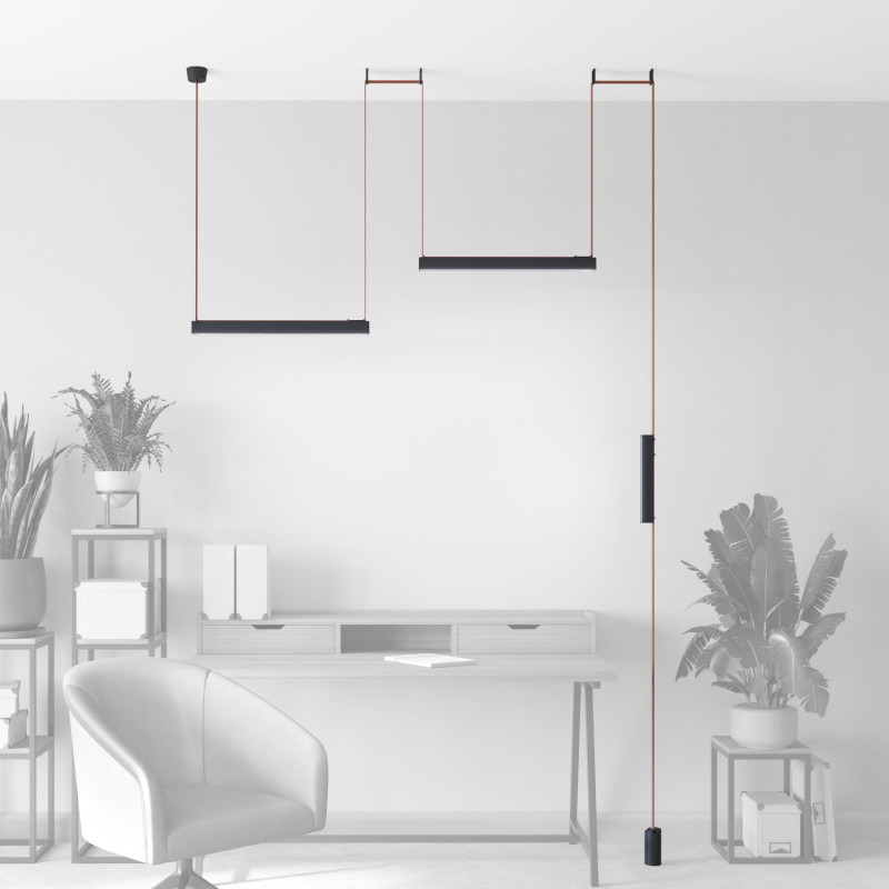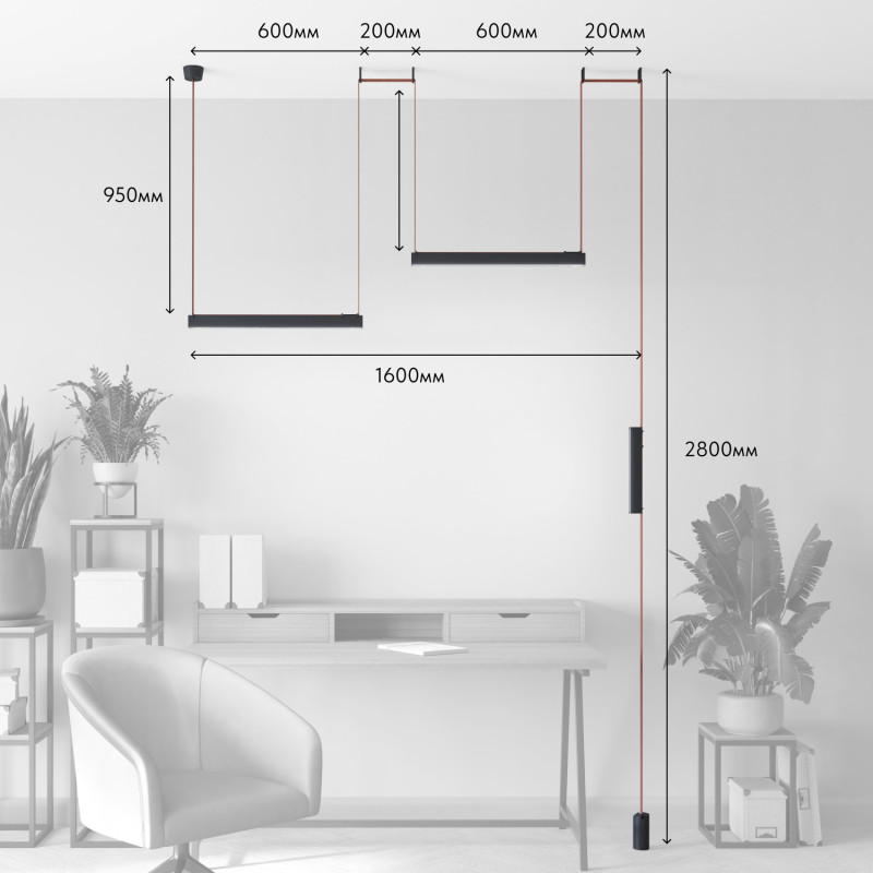 Комплект ременной трековой системы Belty. Предназначен для сборки готового светильника силами покупателя. Поставляется в наборе, состоящем из отдельных комплектующих: элементов ременной системы, блока питания и светильников. Обратите внимание - данный дизайн осветительной системы предполагает выносное размещение блока питания в электрическом щитке/лючке и тд. Необходимо обеспечить подведение низковольтного вывода питания к ременной системе. Если отсутствует возможность обеспечить низковольтный вывод питания, возможно использование модели накладного основания, предусматривающего размещение блока питания внутри себя (артикул TR5510-BK/TR5511-BK). В этом случае изменяется цена набора, а также внешний вид основания.\n\nСостав комплекта: \n TR5512-BK Накладное основание BELTY BASE - 1 шт\n TR5501-BR Трек-ремень BELTY BASE- 1 шт\n TR5518-BK Накладное крепление BELTY BASE - 4 шт\n DK5574-BK Трековый светильник BELTY LINEAR - 1 шт\n DK5576-BK Трековый светильник BELTY LINEAR - 2 шт\n TR5516-BK Утяжелитель BELTY BASE - 1 шт\n TR5526-AL - 1 шт\n\nФактическая длинна ремня 8400 мм.