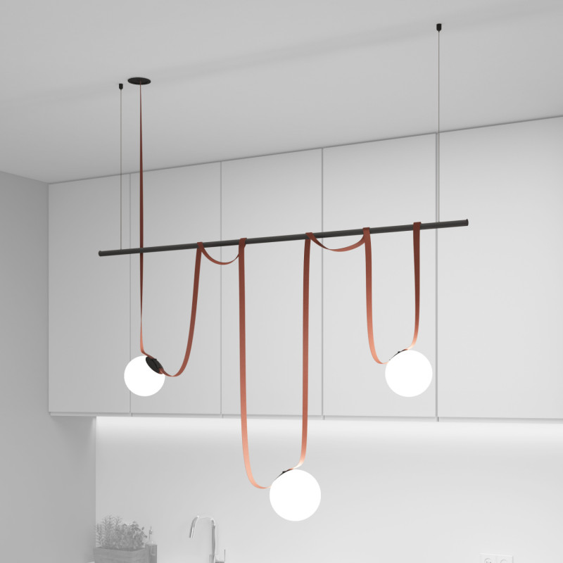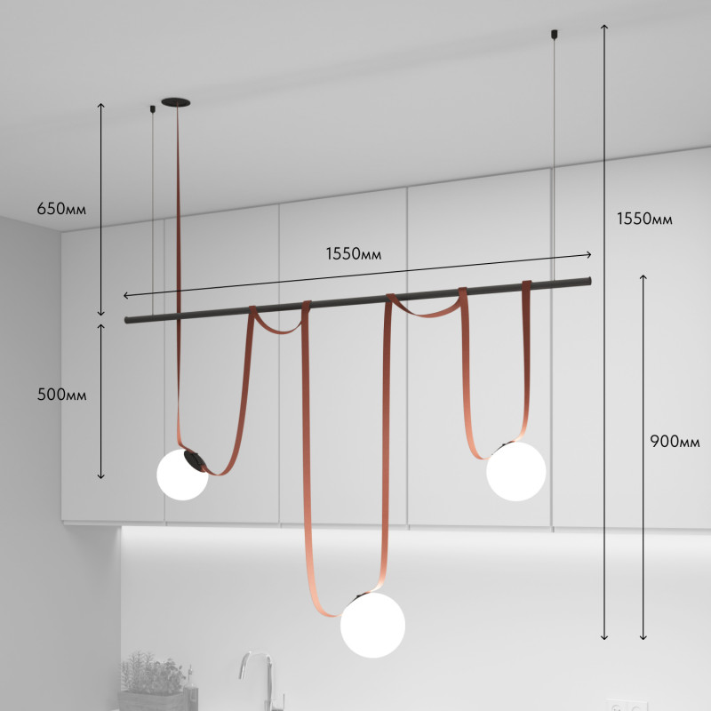 Комплект ременной трековой системы Belty. Предназначен для сборки готового светильника силами покупателя. Поставляется в наборе, состоящем из отдельных комплектующих: элементов ременной системы, блока питания и светильников. Обратите внимание - данный дизайн осветительной системы предполагает выносное размещение блока питания в электрическом щитке/лючке и тд. Необходимо обеспечить подведение низковольтного вывода питания к ременной системе. Если отсутствует возможность обеспечить низковольтный вывод питания, возможно использование модели накладного основания, предусматривающего размещение блока питания внутри себя (артикул TR5510-BK/TR5511-BK). В этом случае изменяется цена набора, а также внешний вид основания.\n\nСостав комплекта: \nTR5513-BK Встраиваемое основание BELTY BASE - 1 шт\nTR5501-BR Трек-ремень BELTY BASE - 1 шт\nTR5501-BR Трек-ремень BELTY BASE- 1 шт\nTR5536-BK Крепление-зажим BELTY ROD - 5 шт\nDK5550-BK Трековый светильник BELTY ORB - 2 шт\nDK5552-BK Трековый светильник BELTY ORB - 1 шт\nTR5537-BK Подвес для штанги BELTY ROD - 2 шт\nTR5532-BK Штанга BELTY ROD - 1 шт\nTR5526-AL - 1 шт\n\nФактическая длинна ремня 5500 мм.