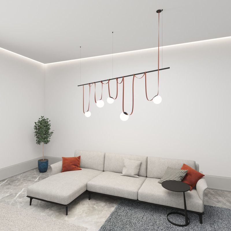Комплект ременной трековой системы Belty. Предназначен для сборки готового светильника силами покупателя. Поставляется в наборе, состоящем из отдельных комплектующих: элементов ременной системы, блока питания и светильников. Обратите внимание - данный дизайн осветительной системы предполагает выносное размещение блока питания в электрическом щитке/лючке и тд. Необходимо обеспечить подведение низковольтного вывода питания к ременной системе. Если отсутствует возможность обеспечить низковольтный вывод питания, возможно использование модели накладного основания, предусматривающего размещение блока питания внутри себя (артикул TR5510-BK/TR5511-BK). В этом случае изменяется цена набора, а также внешний вид основания.\n\nСостав комплекта: \nTR5513-BK Встраиваемое основание BELTY BASE - 1 шт\nTR5501-BR Трек-ремень BELTY BASE- 1 шт\nTR5536-BK Крепление-зажим BELTY ROD - 9 шт\nDK5550-BK Трековый светильник BELTY ORB - 3 шт\nDK5552-BK Трековый светильник BELTY ORB - 2 шт\nTR5537-BK Подвес для штанги BELTY ROD - 3 шт\nTR5534-BK Штанга BELTY ROD - 1 шт\nTR5528-AL - 1 шт\n\nФактическая длинна ремня 10000 мм.