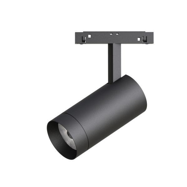 Светильник для магнитных треков MAG-ORIENT шириной 26 мм с управлением DALI. Мощность 20 Вт, св. поток 1840 лм, 92 лм/Вт, теплый 3000 K, CRI>90, угол 24°, напряжение питания 48 В. Черный фигурный корпус из металл, экран поликарбонат, степень защиты IP20. Размеры LxWxH 204x66x201 мм. Длина светоизлучающего модуля 140мм. Монтаж на трек MAG-ORIENT. Пульсация <1%.