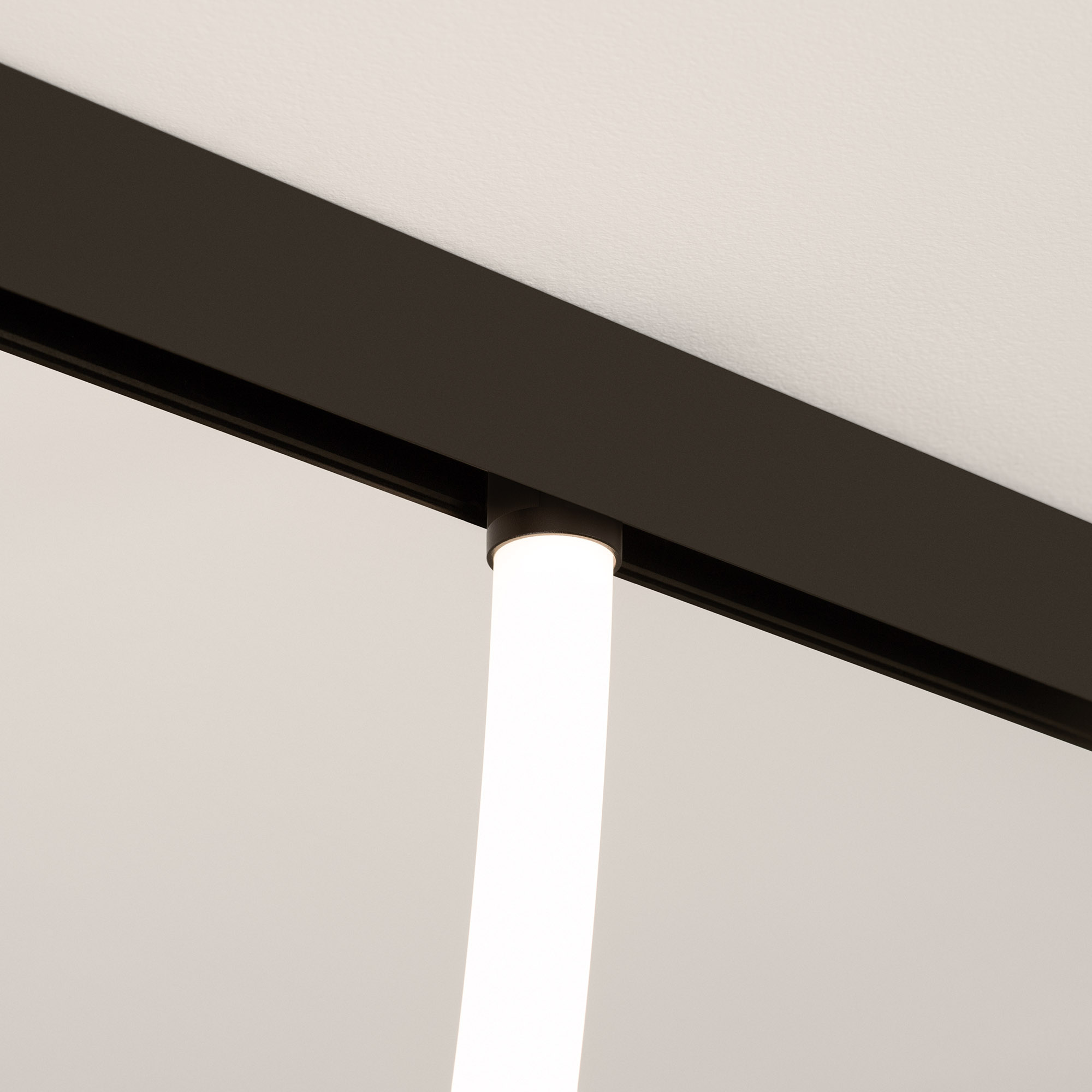 Светильник гибкий для магнитных треков серии ORIENT. Мощность 35 Вт, св. поток 2275 лм, 65 лм/Вт, дневной 4000 K, CRI>90, угол 360°, напряжение питания 48 В. Матовый белый фигурный корпус из силикона с черными креплениями. Размер: диаметр 25 мм, длина 2500 мм. Монтаж на магнитный трек ORIENT. Адаптеры в комплекте.