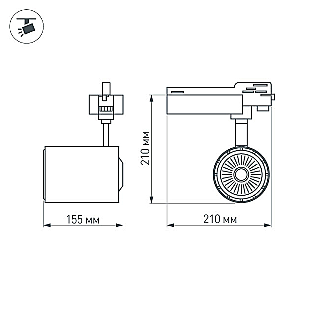 Подвесной светильник для треков/шин 4 провода. Светодиод 30W, цвет БЕЛЫЙ 5000K, св.поток 2700-3100лм, угол 24°. Белый корпус. Мощность 30Вт, питание AC220-240V. Максимальные габариты LxWxH: 210x155x210мм