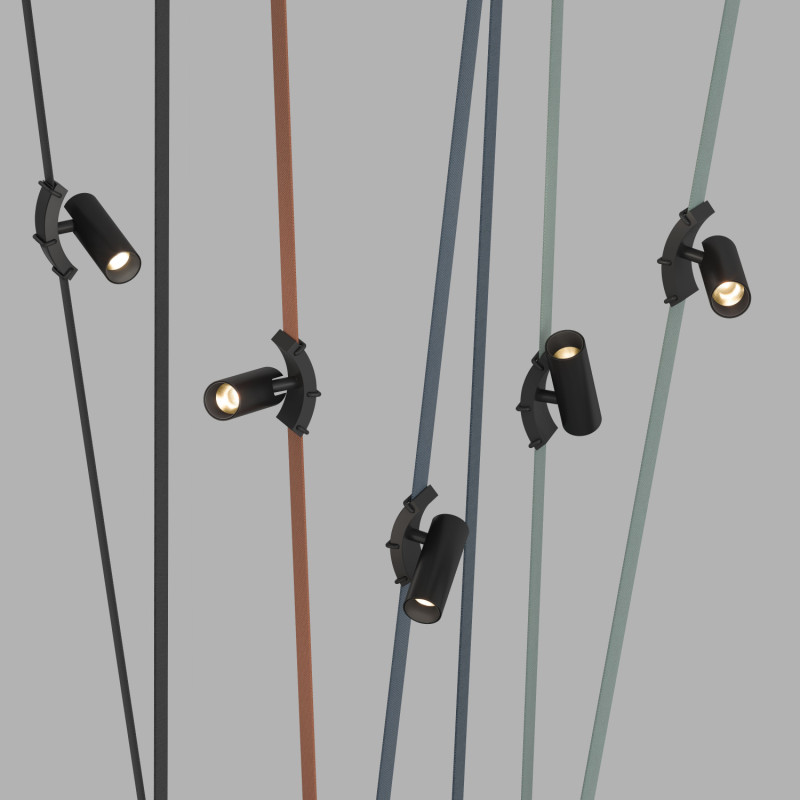 Belty Spot поворотный светильник со встроенным светодиодом для ременной системы BELTY. Корпус светильника изготовлен из алюминия, эффективно отводящего тепло, и имеет матовую шероховатую поверхность. В серии использованы светодиоды CREE мощностью 7W и высоким индексом цветопередачи CRI>90. Матовый рассеиватель из акрила с углом излучения 30° обеспечивает высокий уровень зрительного комфорта и исключает слепящий эффект. Цветовая температура модели 3000К. Простая установка в любом месте трека-ремня. Модель представлена также в белом цвете.
