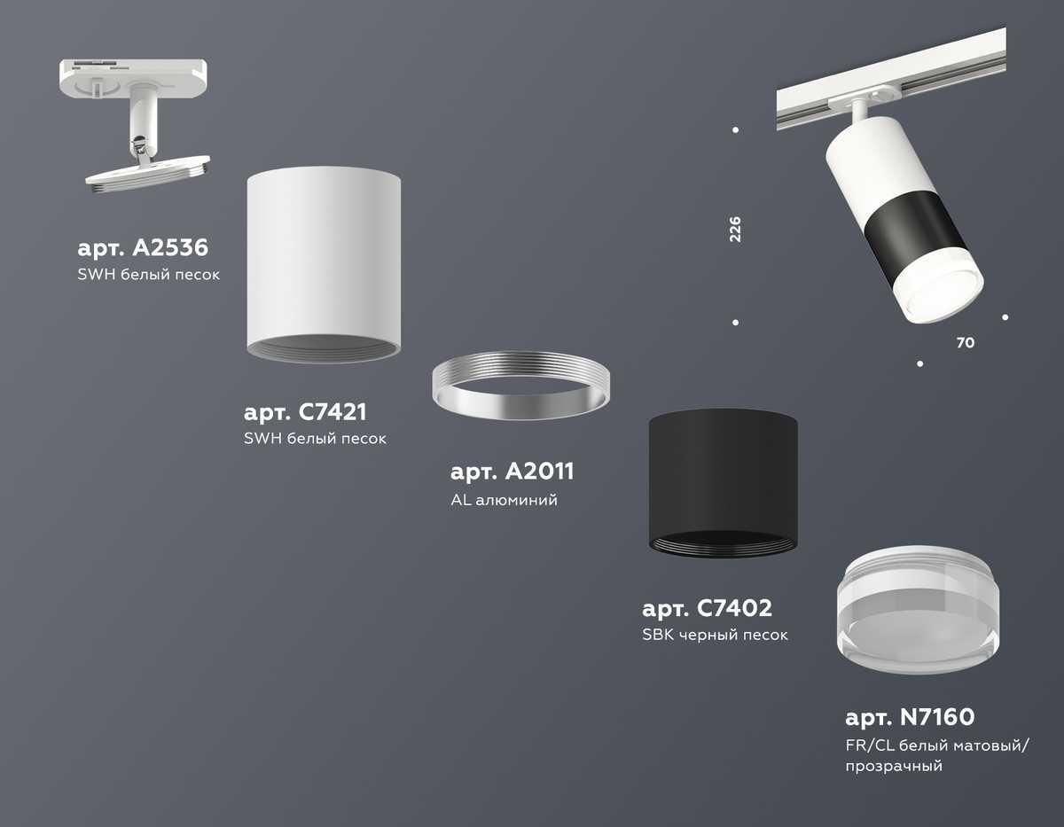 Комплект трекового светильника Ambrella light Track System XT (A2536, C7421, A2011, C7402, N7160) XT7402093 от производителя Ambrella Light. Артикул производителя AMBRELLA_XT7402093.