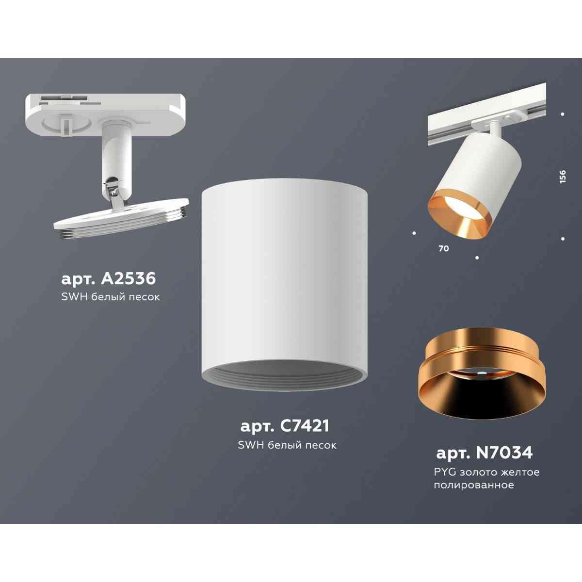 Комплект трекового светильника Ambrella light Track System XT7421004 SWH/PYG белый песок/золото желтое полированное (A2536, C7421, N7034) от производителя Ambrella Light. Артикул производителя AMBRELLA_XT7421004.