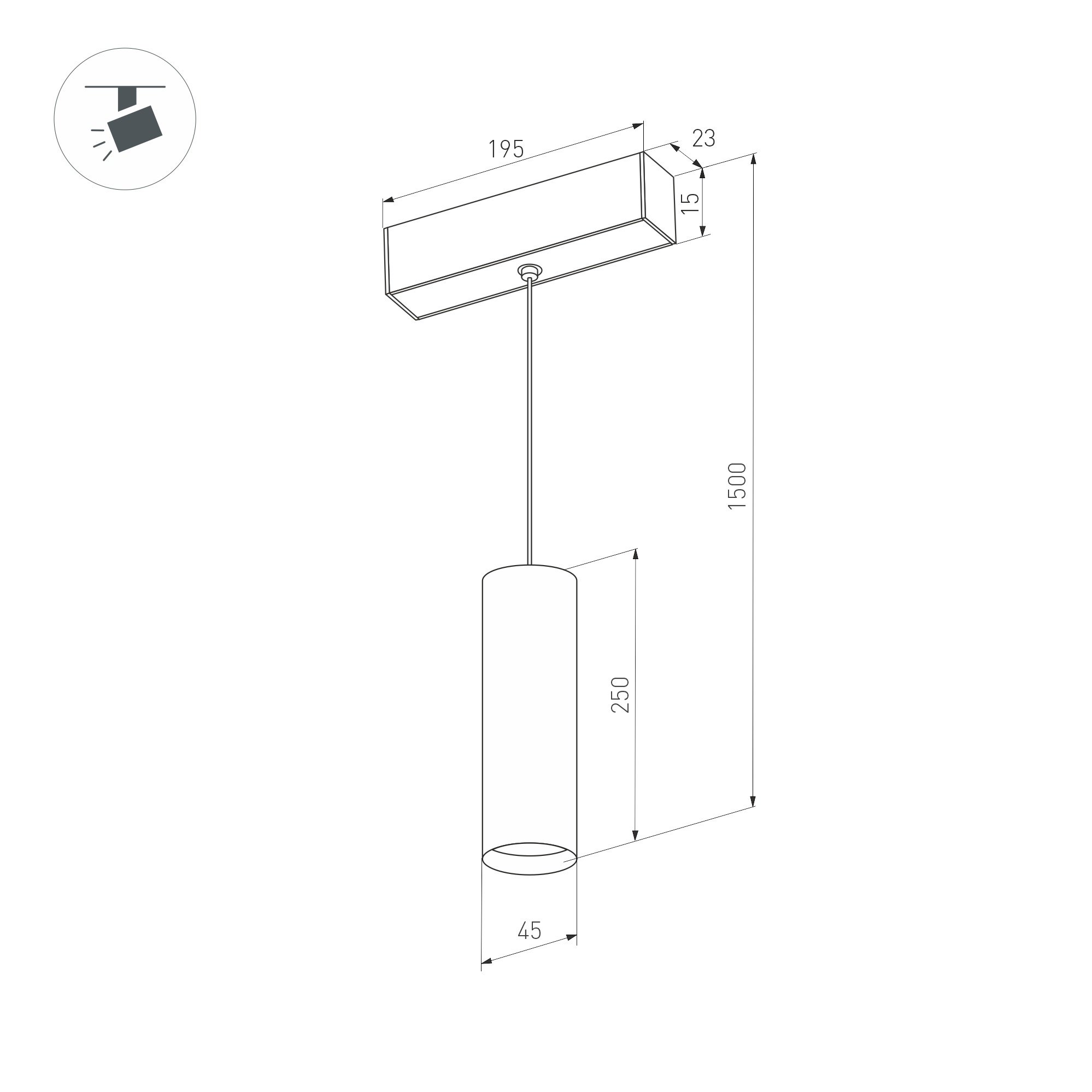 Светильник для магнитных треков MAG-ORIENT шириной 26 мм с управлением DALI. Мощность 12 Вт, св. поток 900 лм, 75 лм/Вт, дневной 4000 K, CRI>90, угол 24°, напряжение питания 48 В. Черный цилиндрический корпус из металл, степень защиты IP20. Размер: длина 204 мм, ширина 45 мм, высота 1518 мм, высота подвеса 1250мм. Размер светоизлучающего модуля: 45*250 мм. Монтаж на трек MAG-ORIENT. Пульсация <1%. UGR<16. Подвес регулируется.
