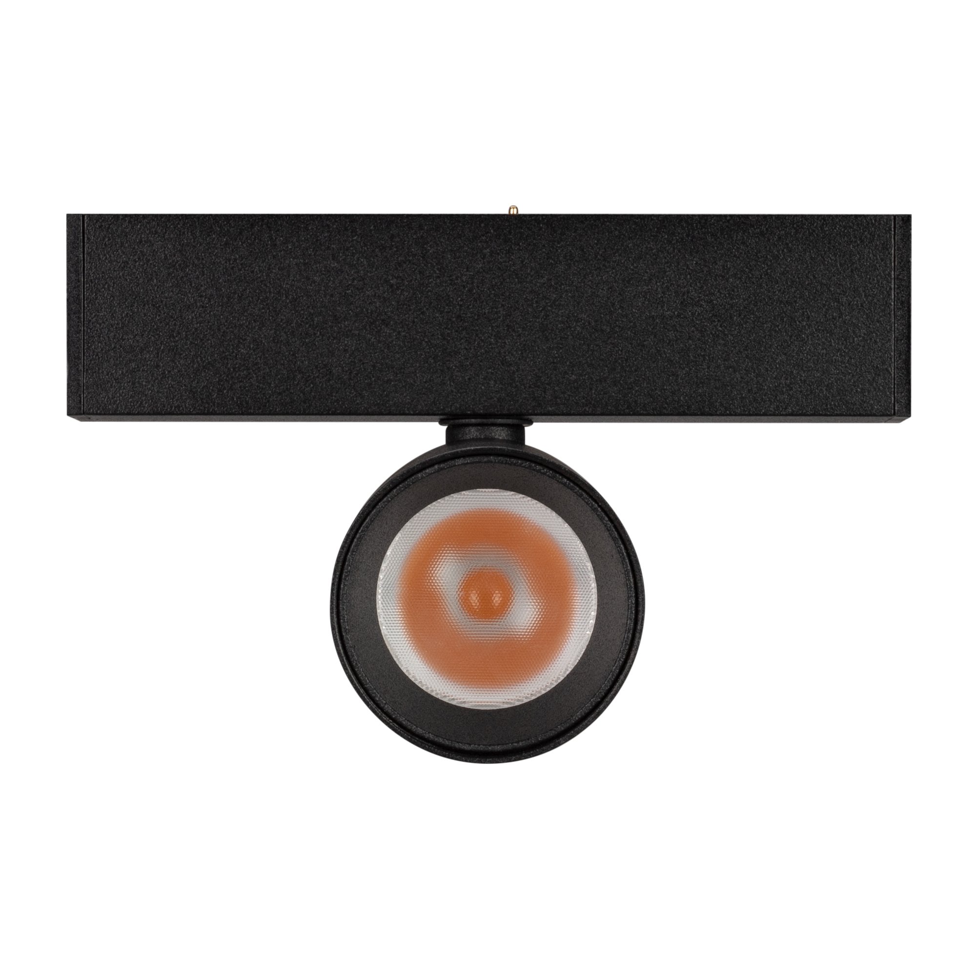 Светильник поворотный для магнитных треков шириной 25 мм, 5 Вт. Цвет свечения ТЕПЛЫЙ 3000K, световой поток 350лм, угол 30°, CRI>90. Корпус прямоугольный, металл, цвет черный, IP20. Размеры LxWxH 100x20x95 мм. Входное напряжение DC24V, мощность 5 Вт. Драйвер DС24V/AC230V поставляется отдельно.Диаметр светоизлучающего модуля 35 мм. Диммируется только с 026407, 027633.